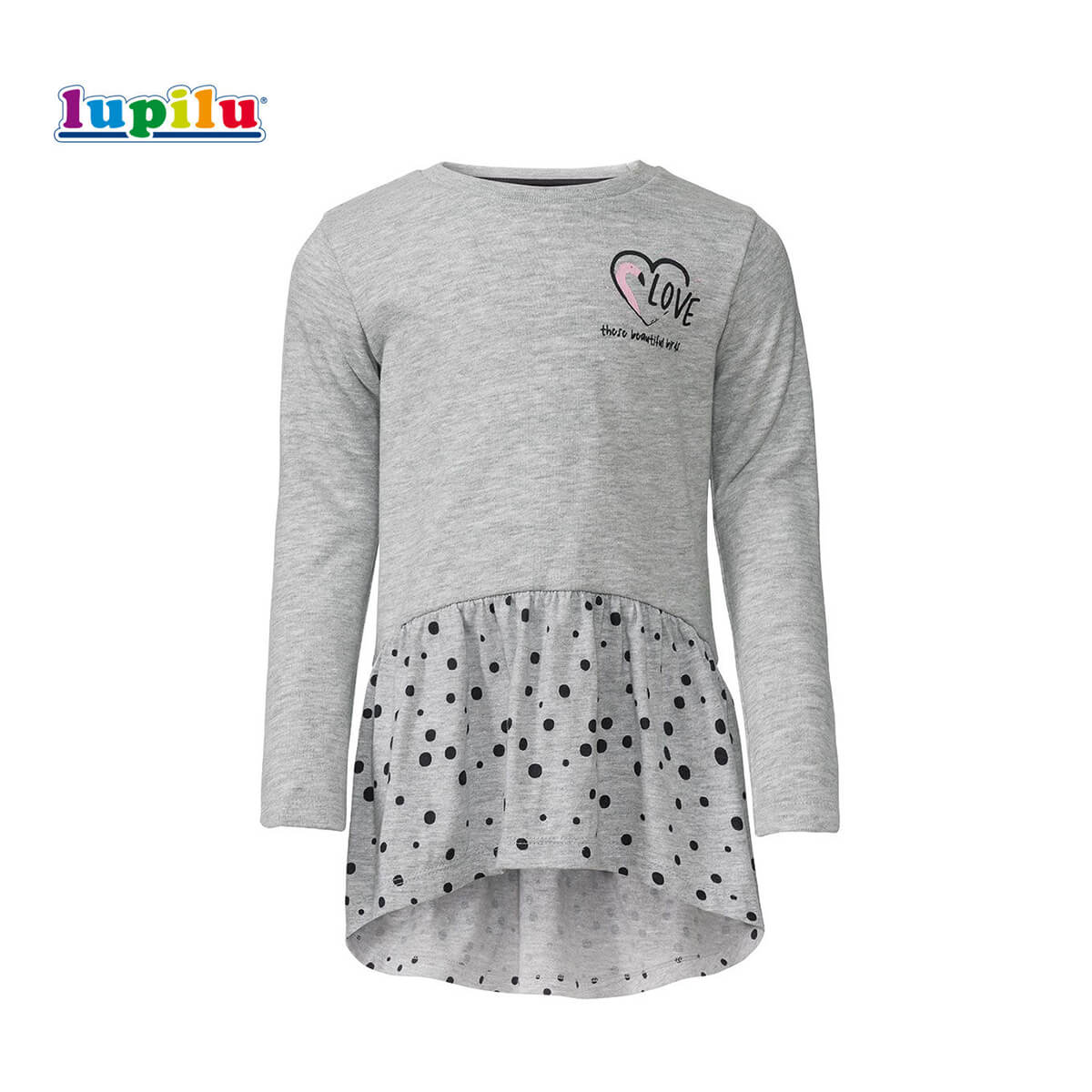 LUPILU LIGHT GREY FROCK WITH POLKA DOTS