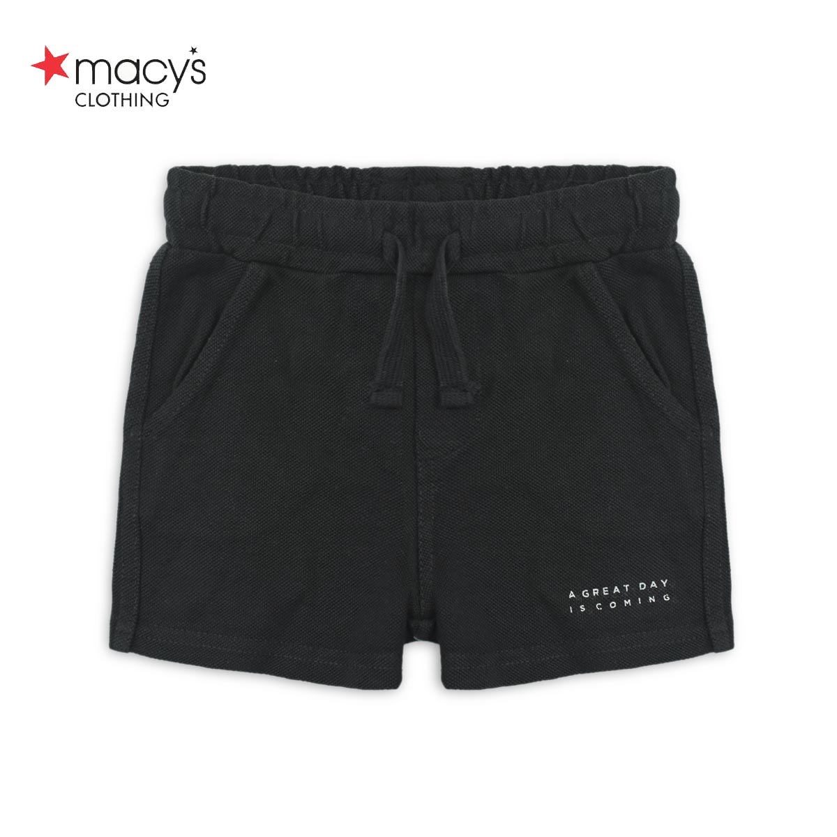 MACYS BLACK PIQUE SHORT WITH SLOGAN
