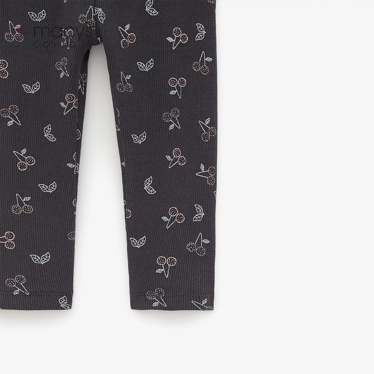 MACYS CHARCOAL CHERRY PRINT RIB LEGGING -MYS09