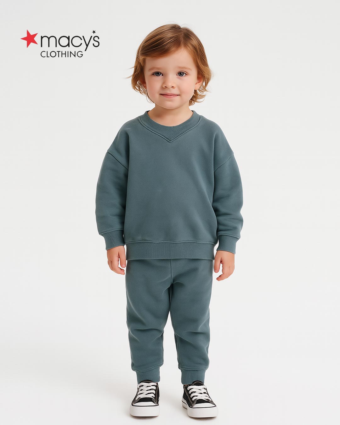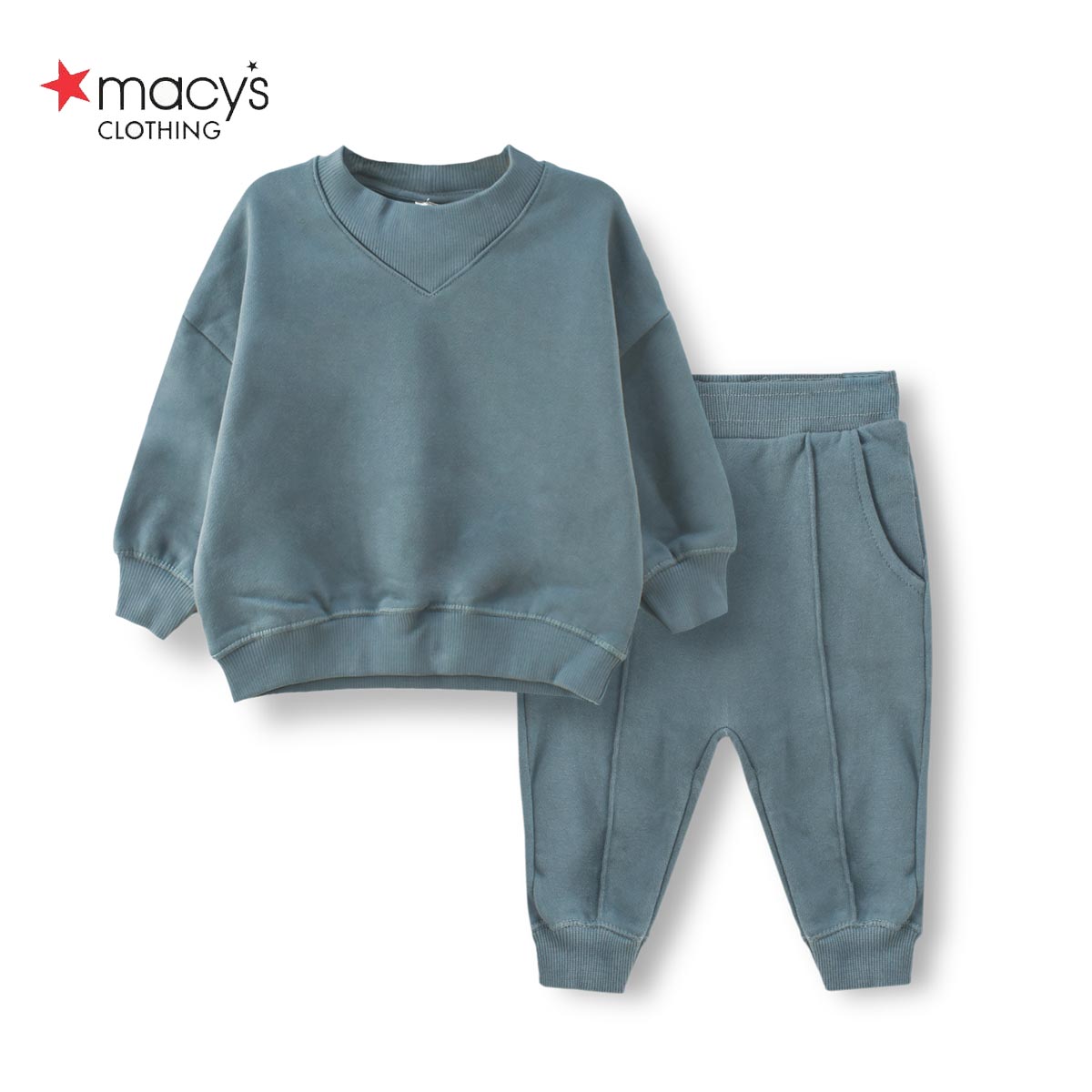 Two-piece cotton suit. Long-sleeved crew neck sweatshirt. Elastic waistband