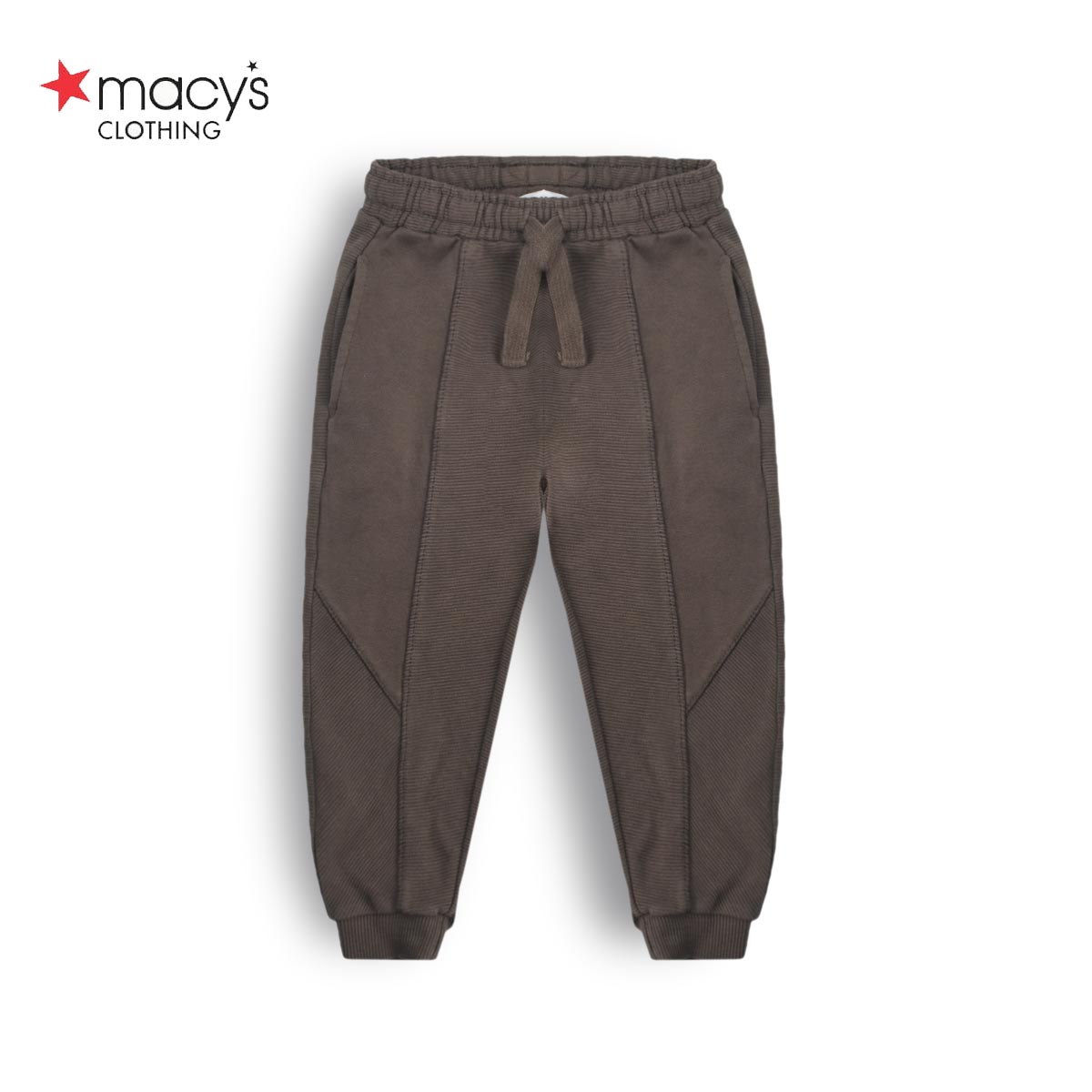 Trousers with an elastic waistband and adjustable drawstrings. Front pockets. Cuffed hems.
