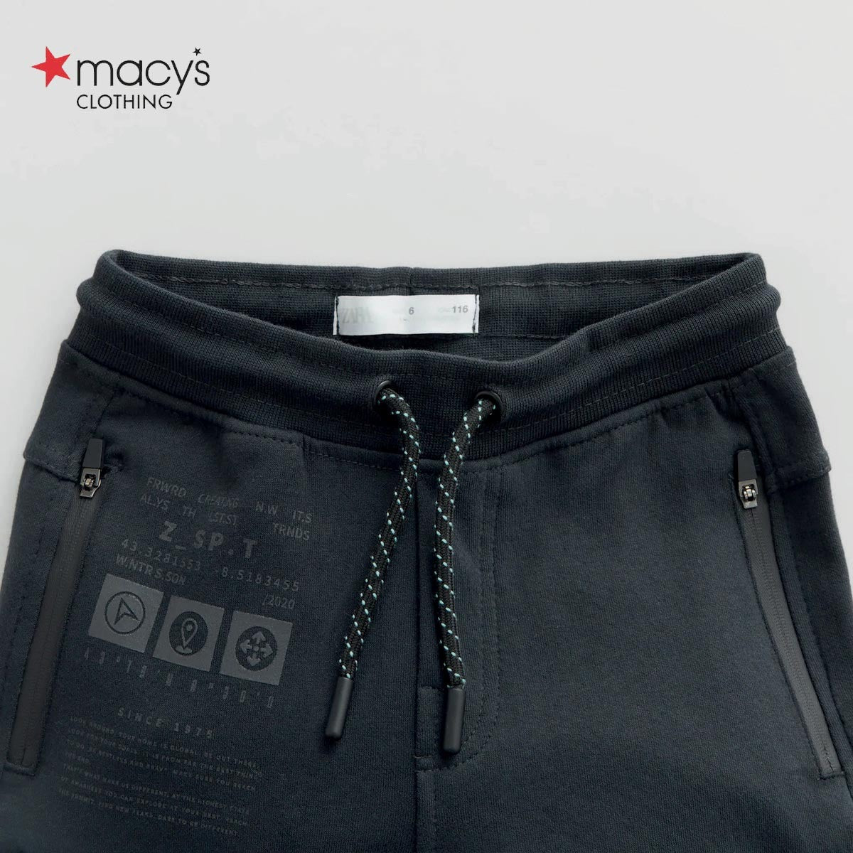 Trousers with an elastic drawstring waistband. Front pockets and rear pocket. Elastic cuffed hems.