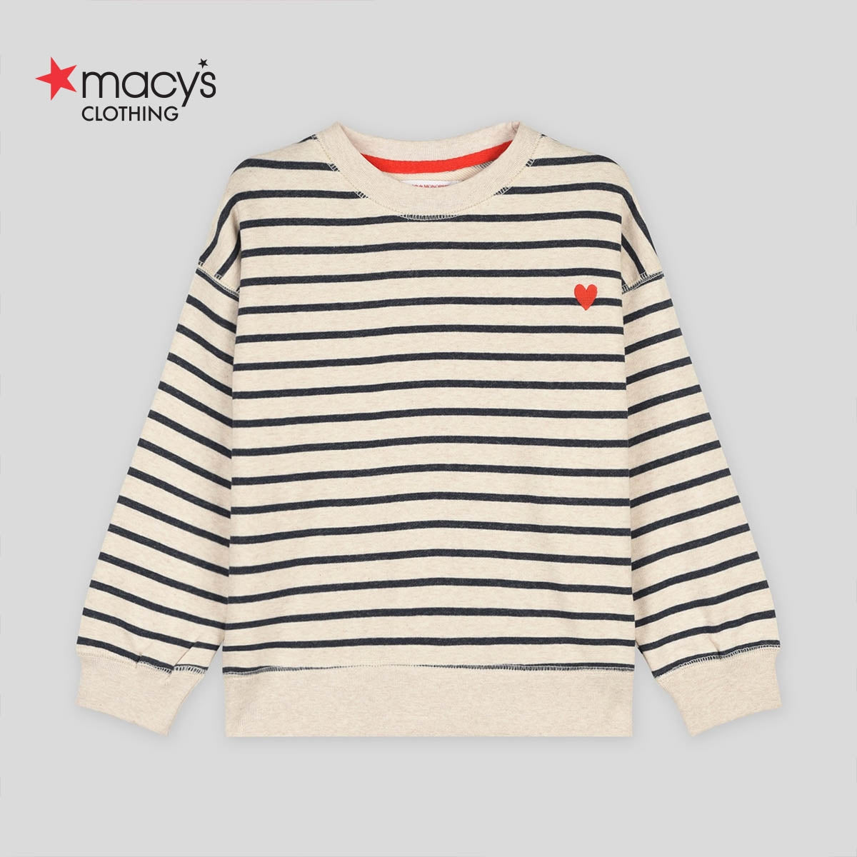 MACYS ECRU STRIPED ORGANIC COTTON SWEATSHIRT