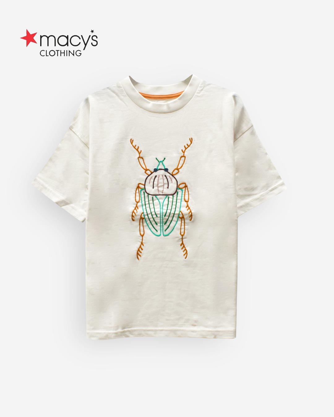 MACYS OFF WHITE EMBROIDRED T-SHIRT