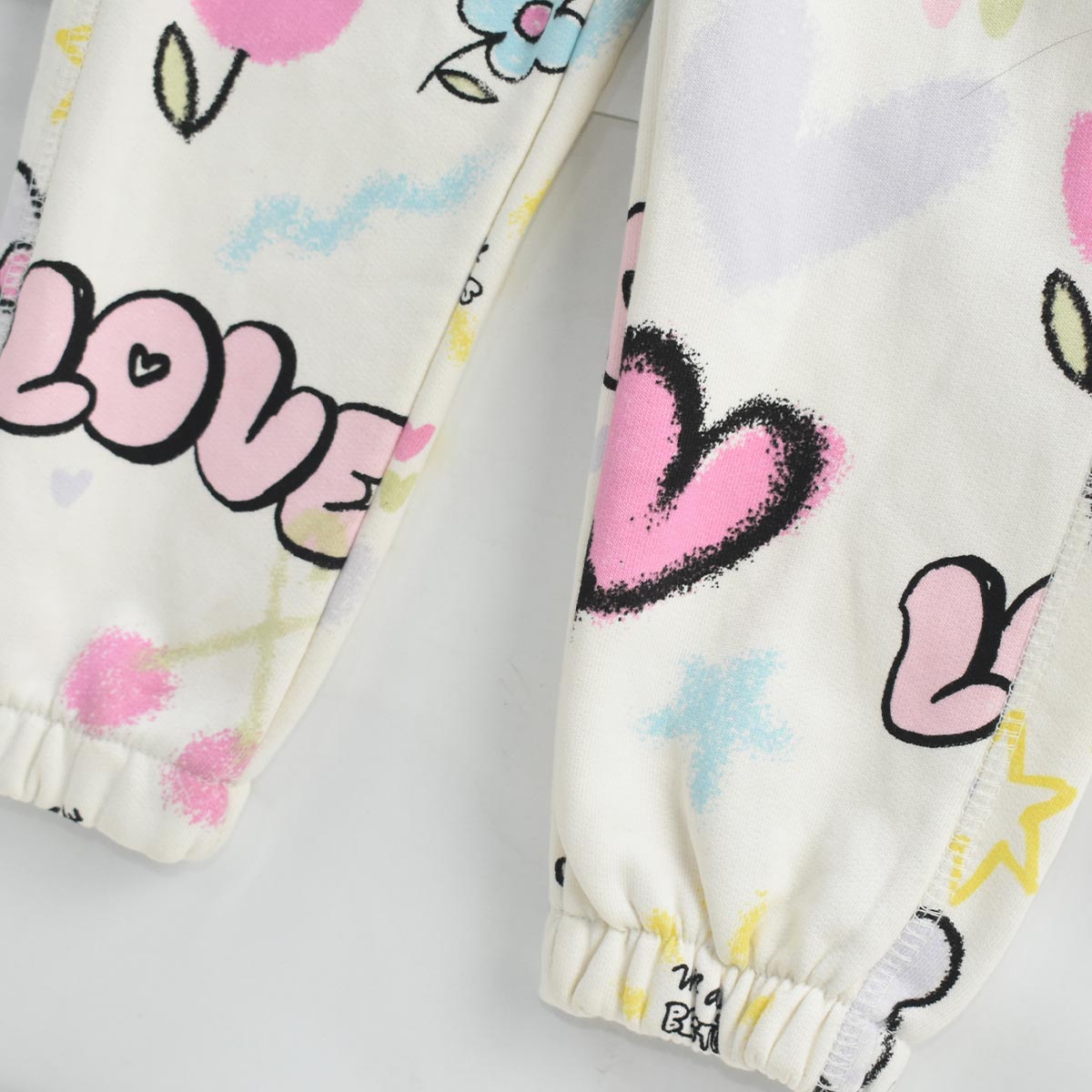 Trousers with an elastic waistband. Front pockets. Elastic cuffed hems. All over prints