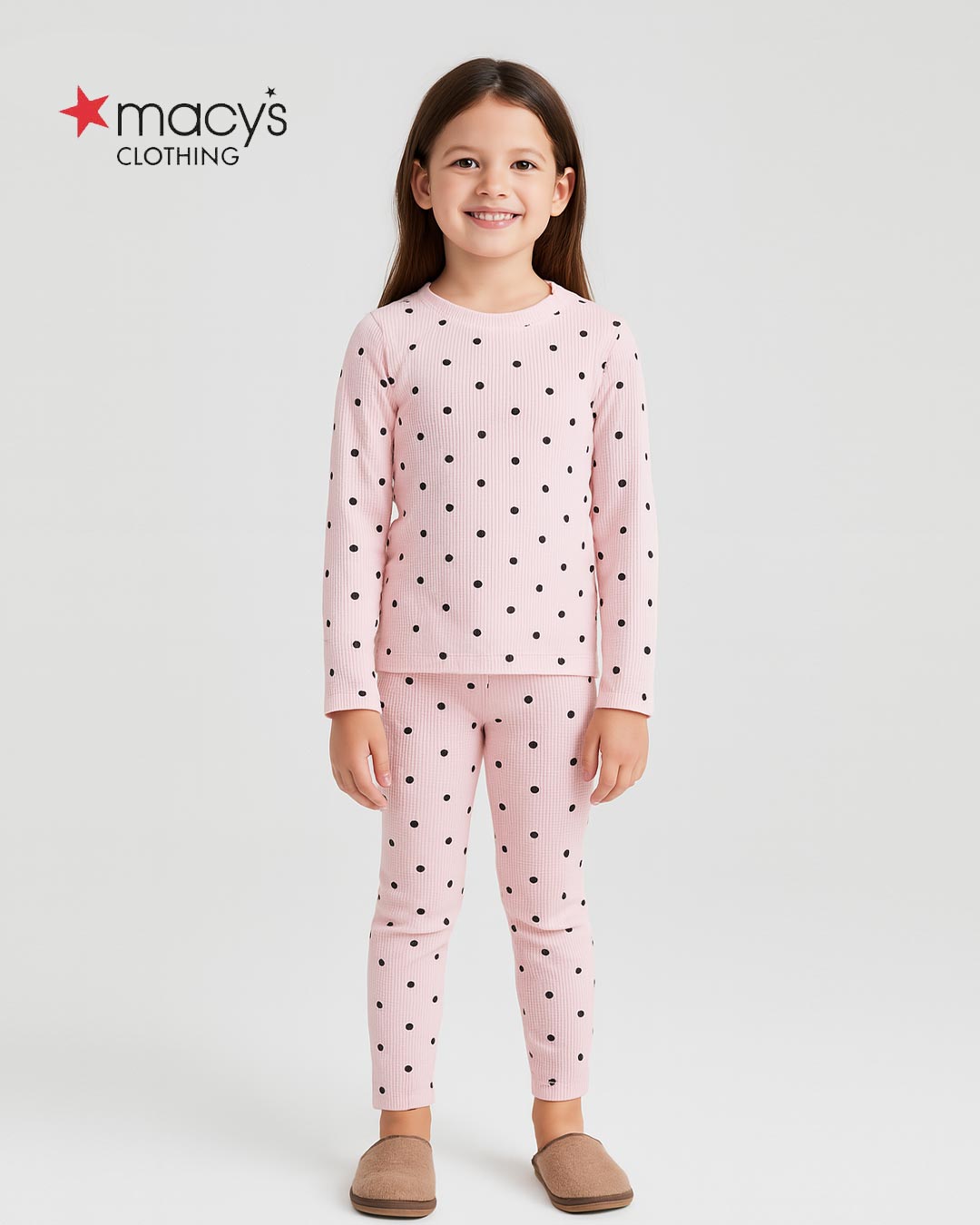 MACYS PINK DOTTED RIBBED 2 PCS SET