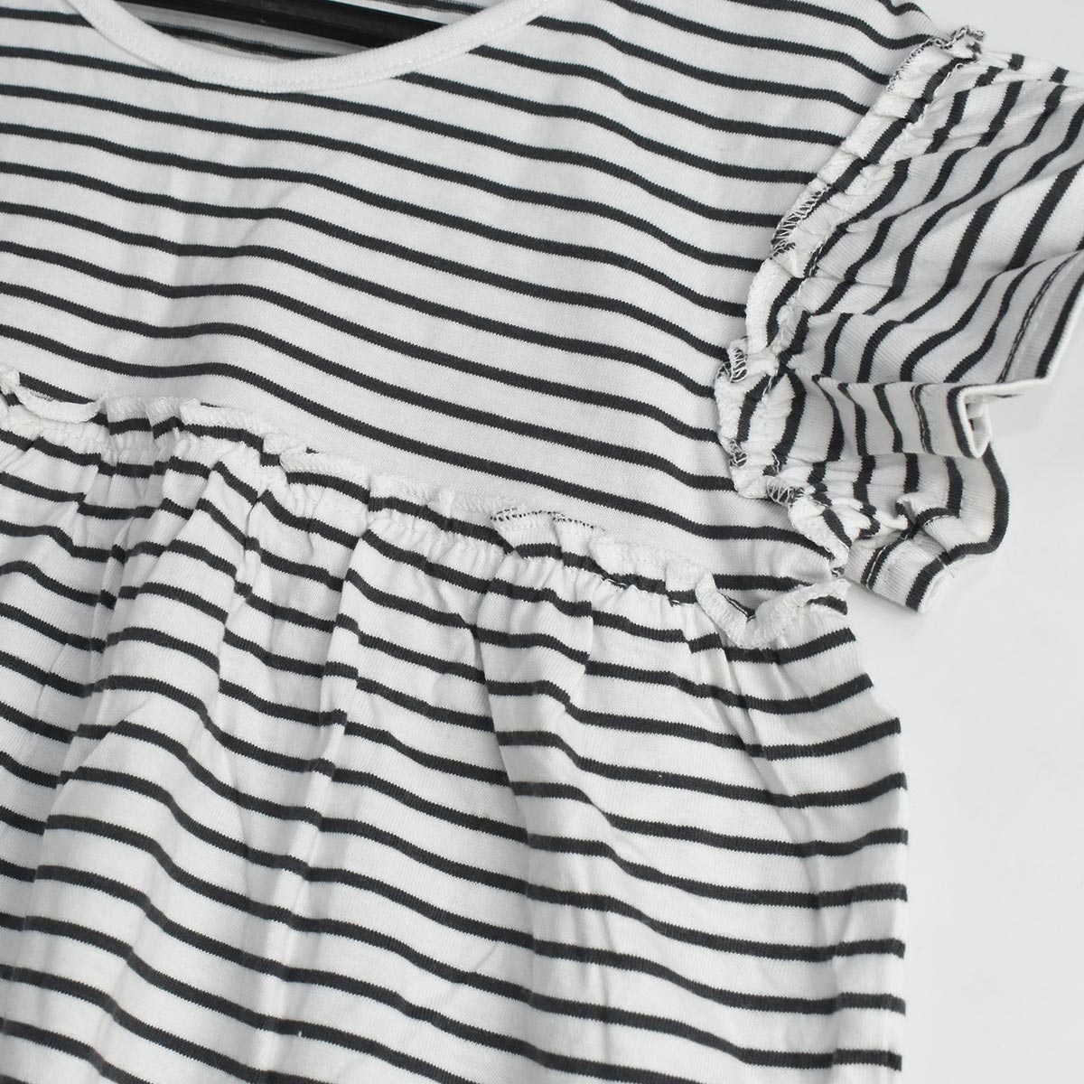 Description & fit Short sleeve dress in printed cotton jersey with a gathered seam at the waist and flared skirt.