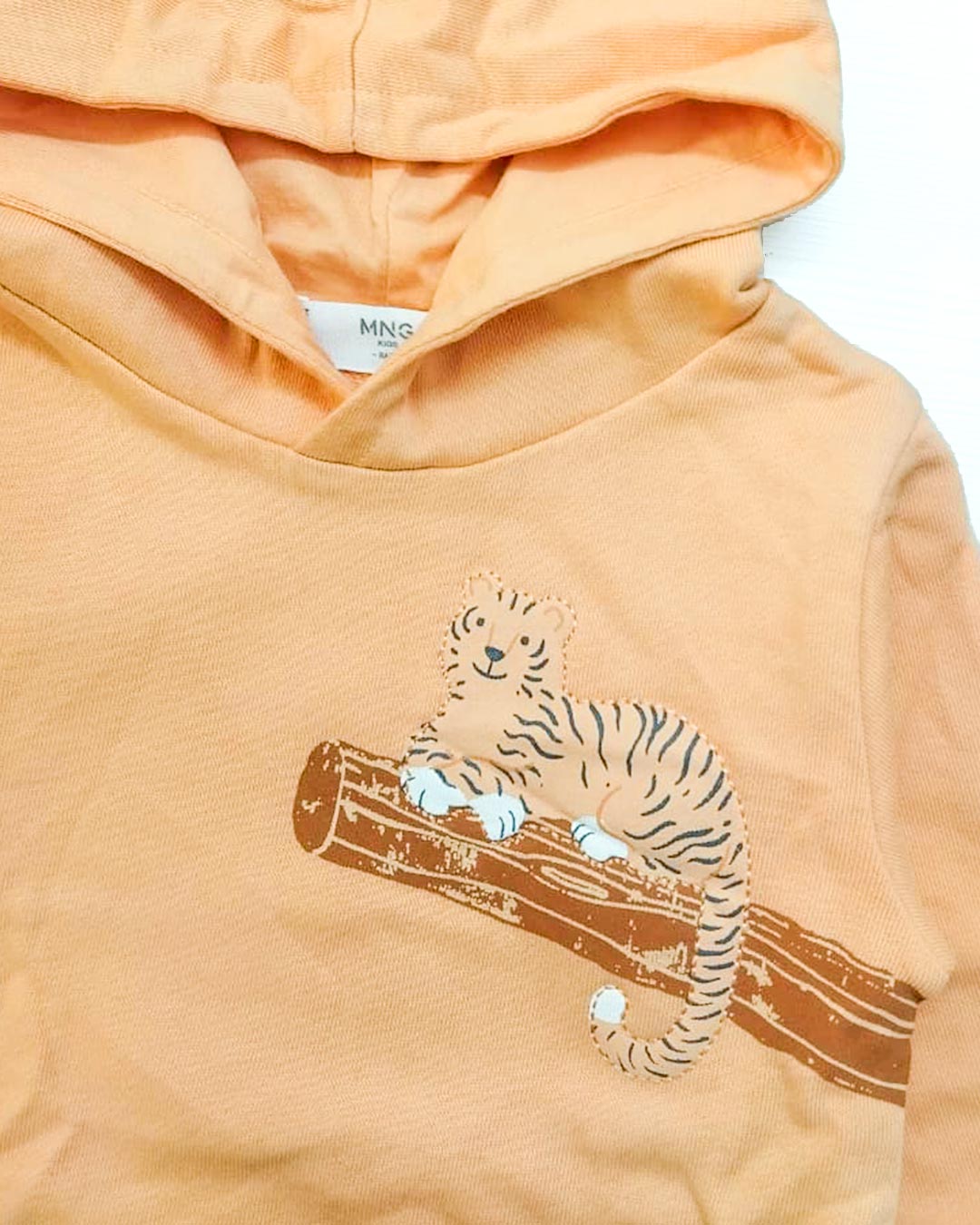 This Baby Peach Tiger Print Hooded Sweatshirt brings together comfort, warmth, and playful style for everyday wear. Made from soft, cozy sweatshirt fabric, it feels gentle on your baby’s skin while keeping them snug during cooler days.
