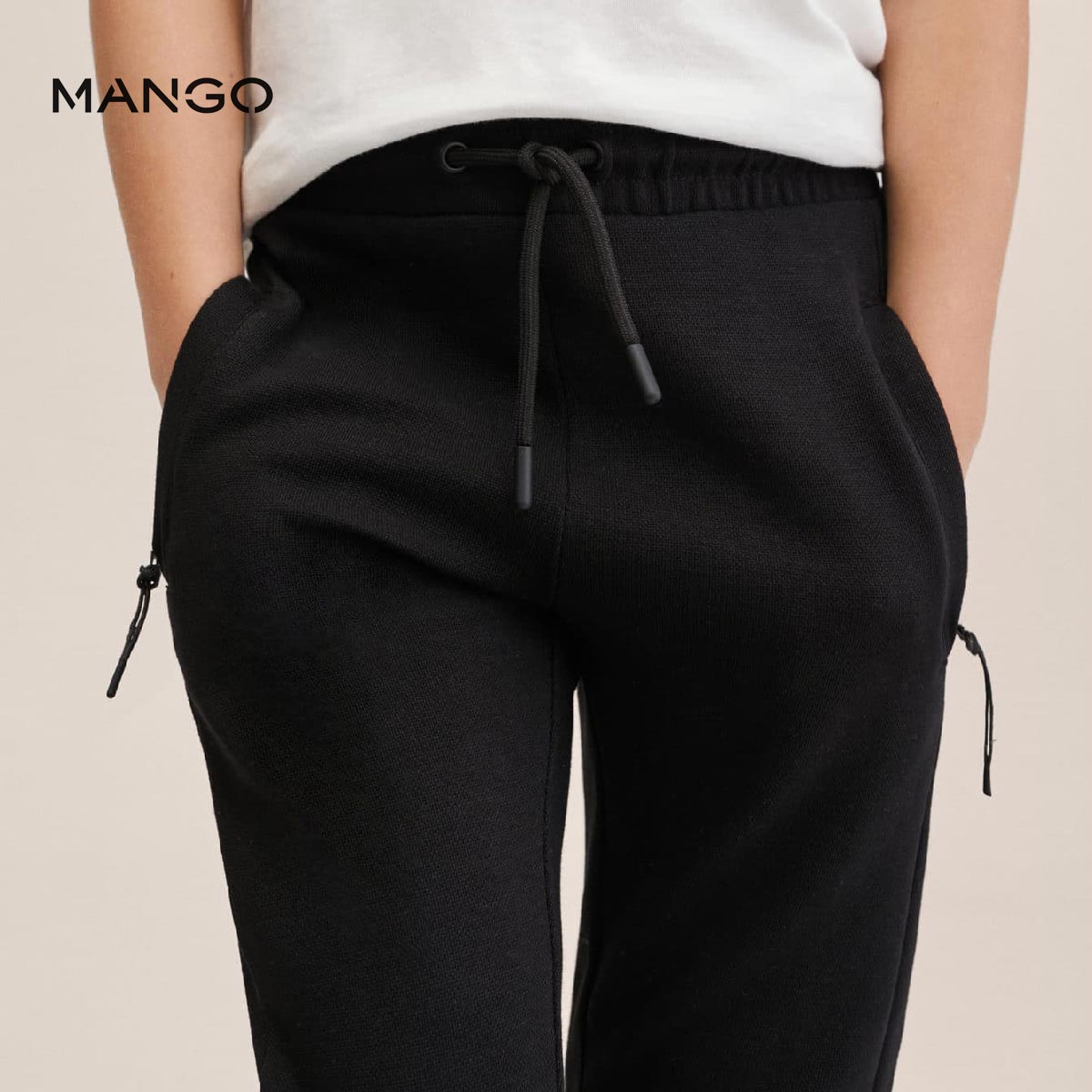 "DESCRIPTION 100% cotton fabric. Jogger design. Long design. Elastic waist with adjustable drawstring. Zip pockets on both sides. Two welt pockets on the back. Cable knit finish."