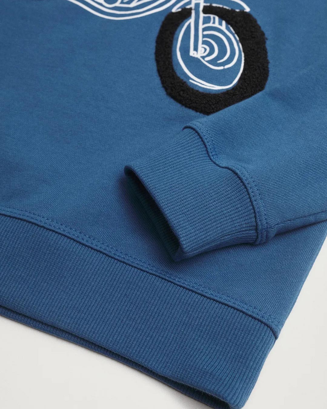 100% cotton fabric, Embossed texture, Positional print, Rounded neck, Short sleeve, Cable knit finish.
