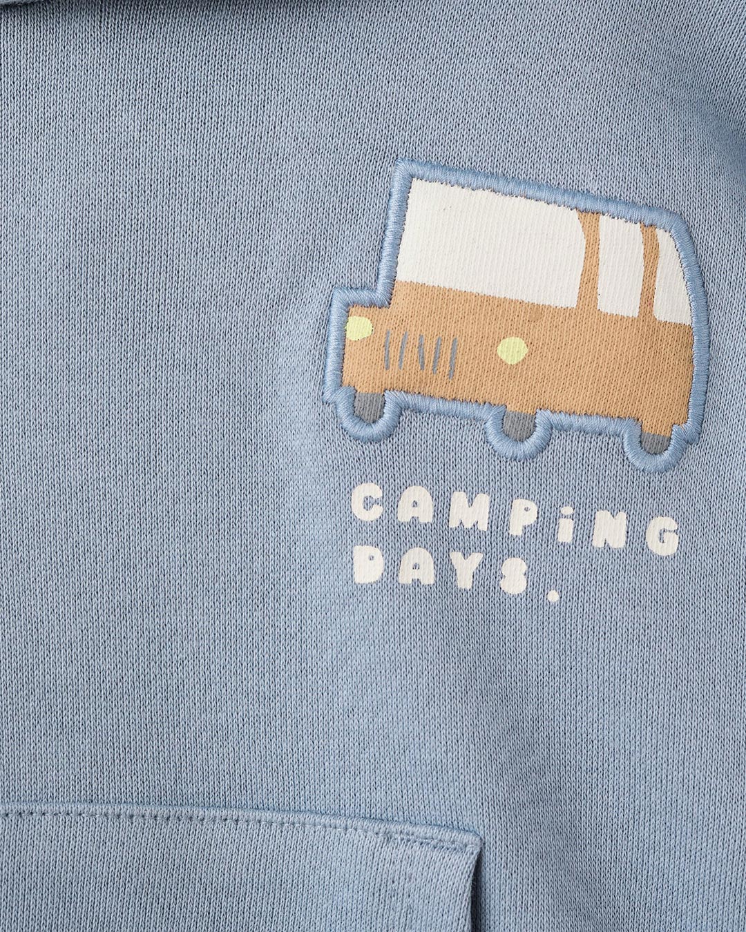 100% cotton fabric. Straight Design. Car design. With hood. Long sleeves. Embroidered drawing on the chest. Letter print. Front patch pocket.