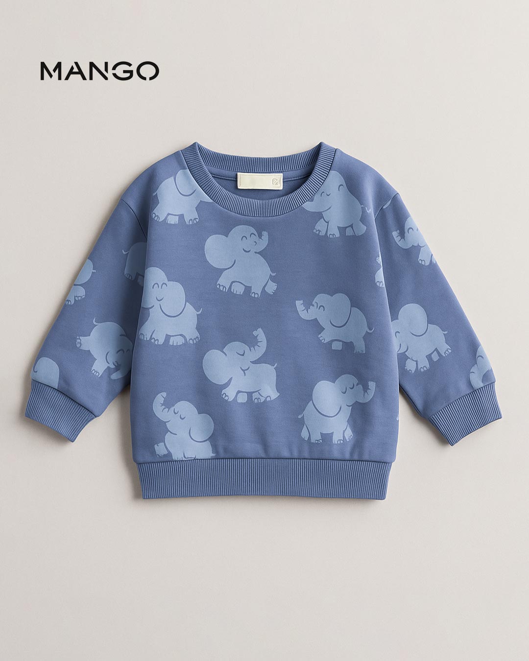 This adorable baby elephant print sweatshirt is designed to keep little ones cozy while adding a playful touch to their everyday outfits. Crafted from soft, breathable fabric, it feels gentle on delicate skin and provides all-day comfort. The charming elephant all-over print gives it a cute, cheerful look, while the ribbed neckline, cuffs, and hem ensure a snug and comfortable fit. Perfect for casual wear, playtime, or layering on cooler days.
