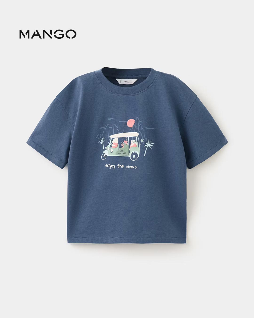 100% cotton fabric. Straight design. Round neck. Short sleeves. Printed drawing on the chest