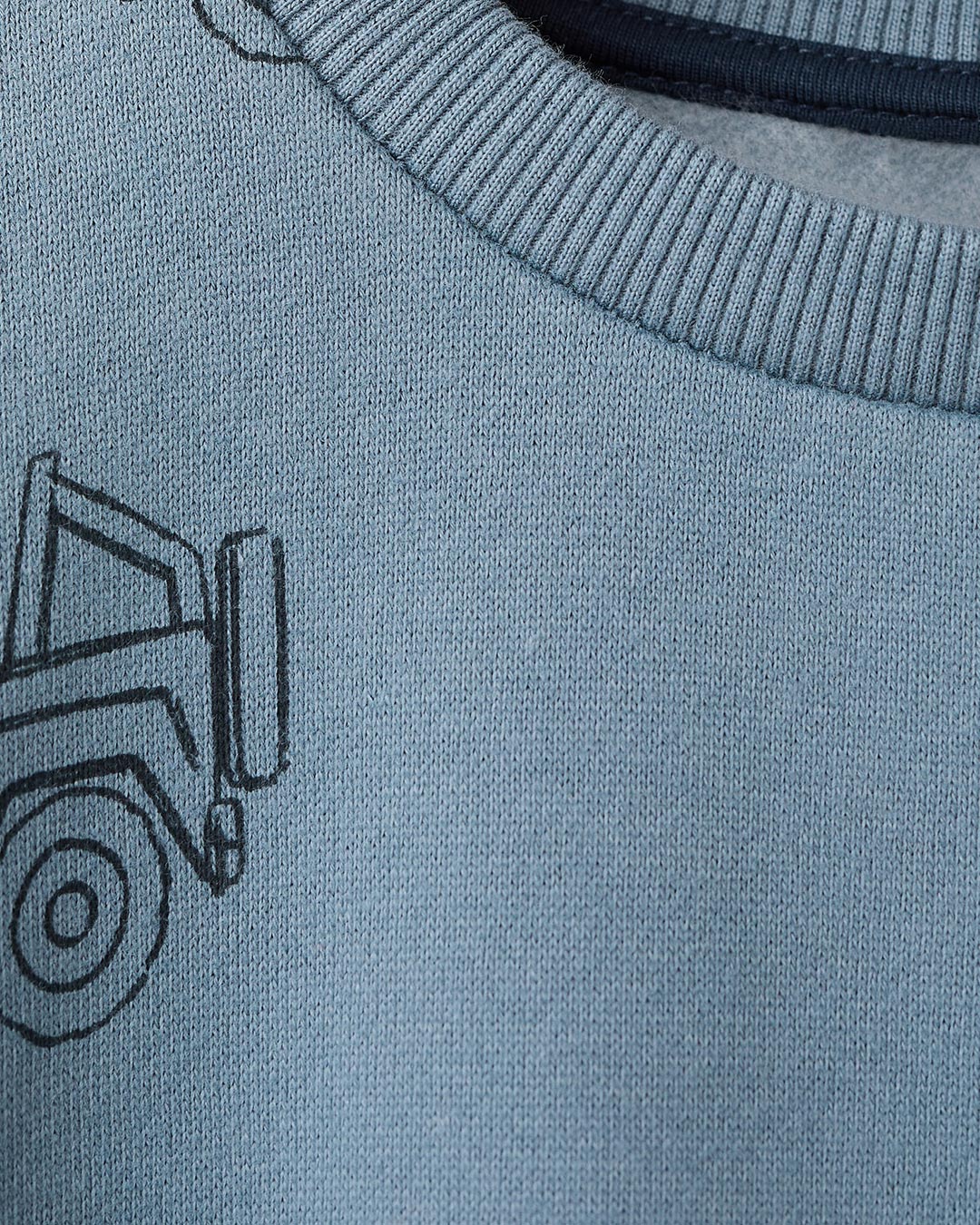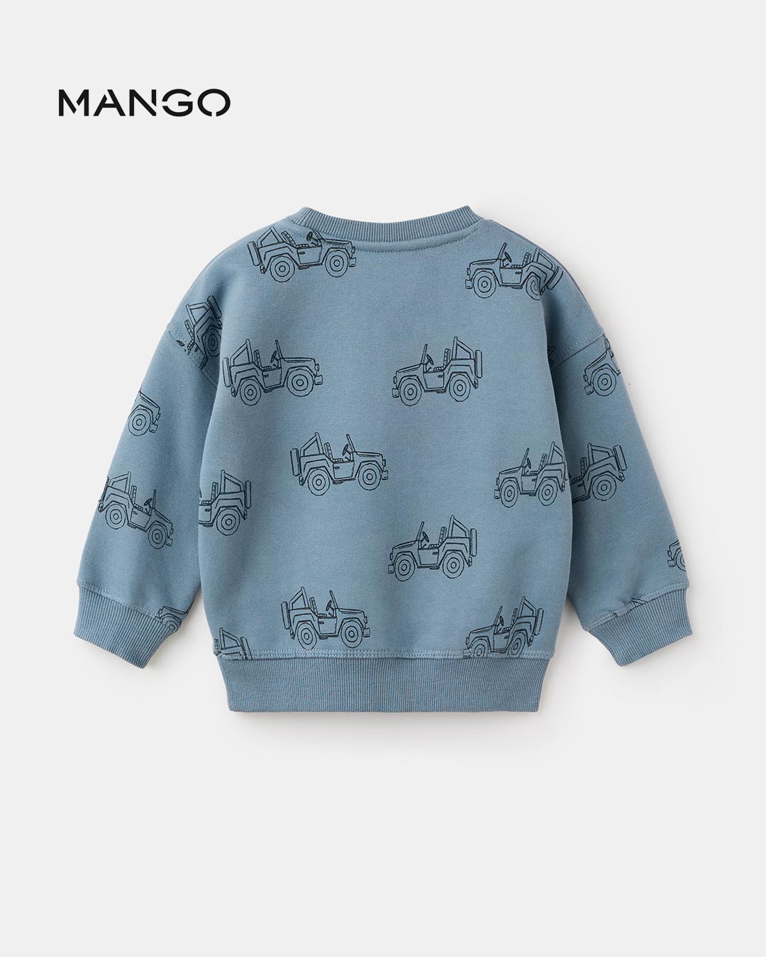 Cotton fabric. Printed design. Cars design. Round neck. Long sleeves. Ribbed collar, cuffs and hem. Total look.