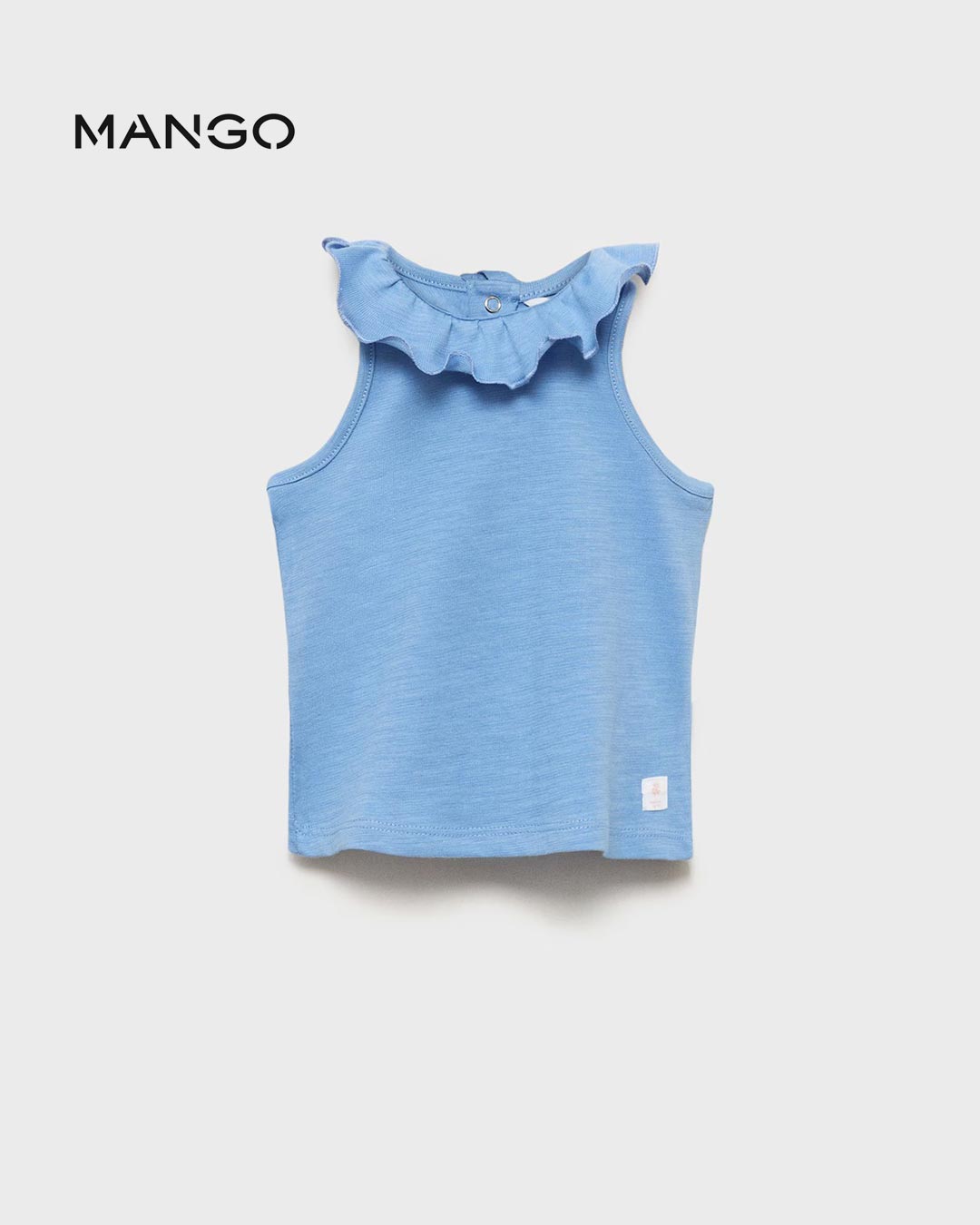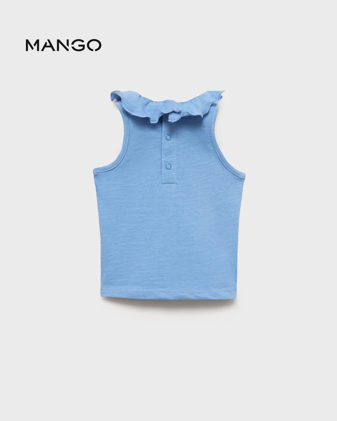 MANGO BLUE RUFFLE NECK T-SHIRT