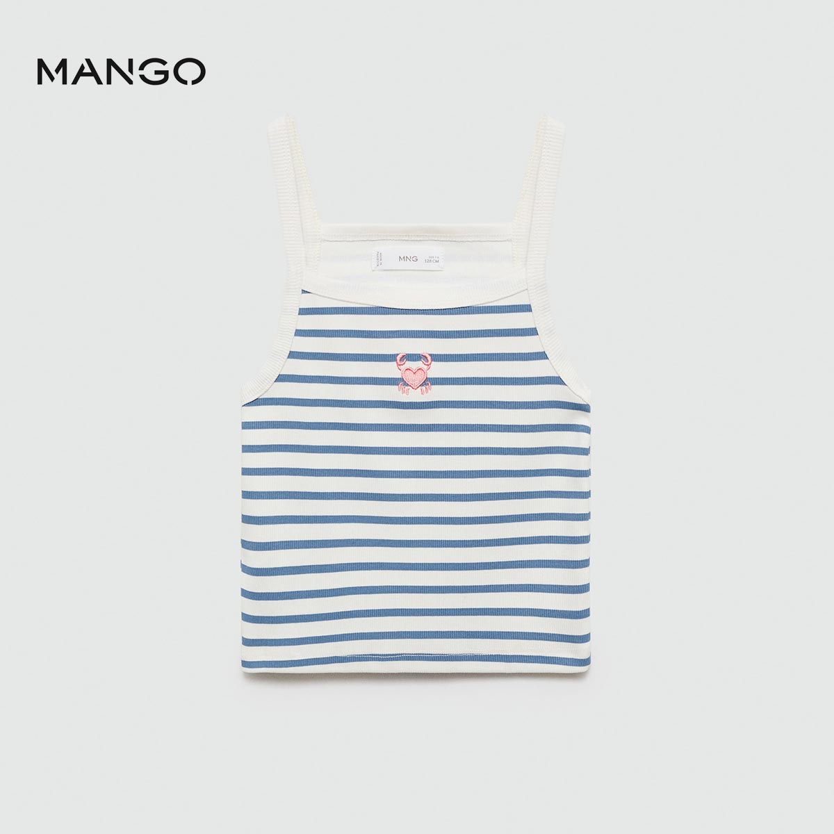 MANGO BLUE SALTY STRIPED STRAP CROPPED TOP