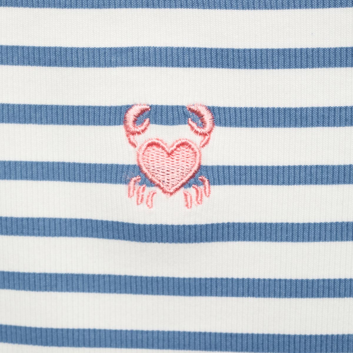 DESCRIPTION Summer camp. Embroidered message. Cropped design. Straight design. Striped print. Thin straps. Rounded neck. Sleeveless.