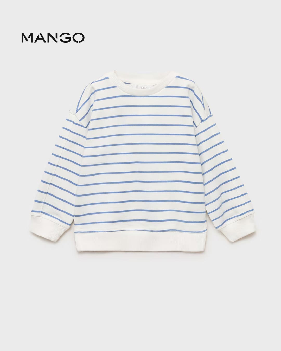 100% Cotton. Straight design. Striped print. Round neck. Long Sleeve. Contrasting finishes. Ribbed collar, cuffs and hem.