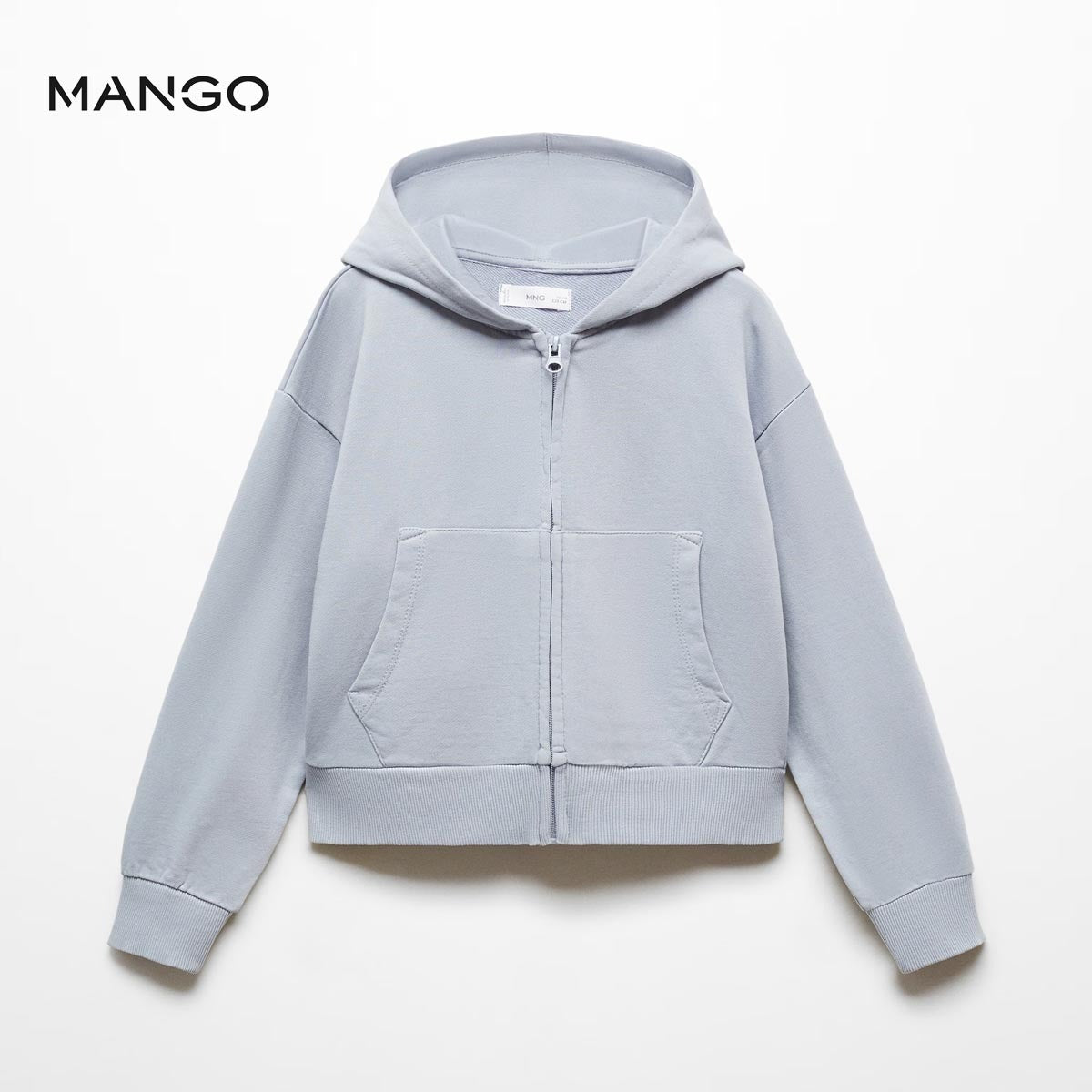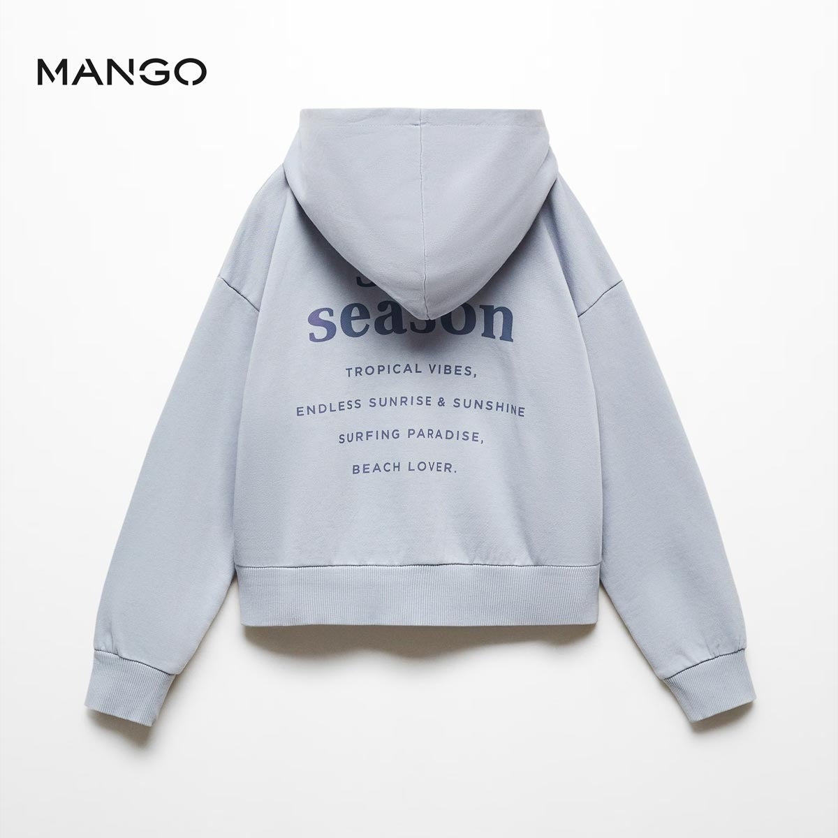 Summer camp. Printed message. Cropped design. Straight design. Long sleeve. Hood. Pouch pocket. Front closure. Zip fastening.