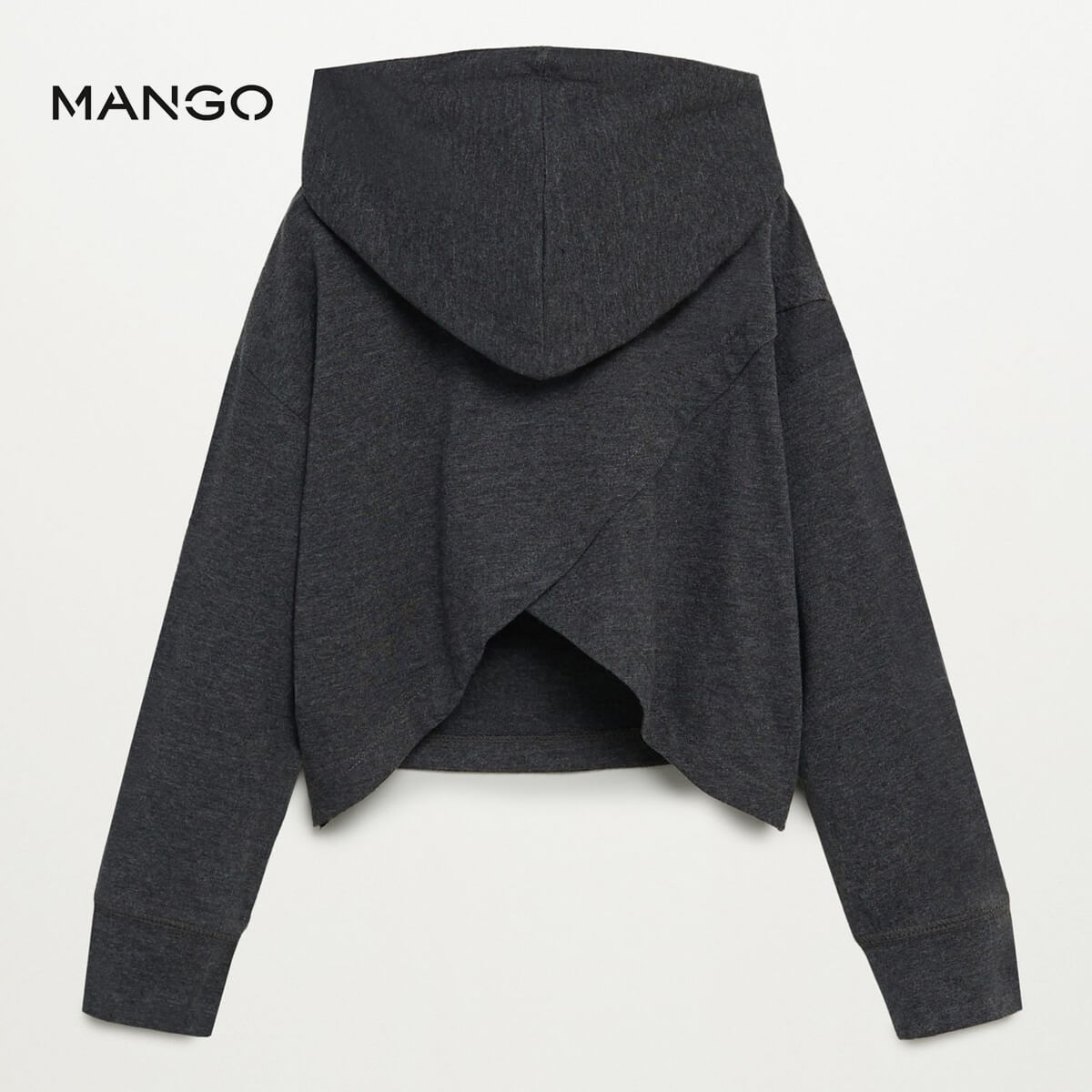 Organic cotton-blend fabric. With hood. Cropped design. Crossover design. Rounded neck. Long sleeve with elastic cuffs. Sport.