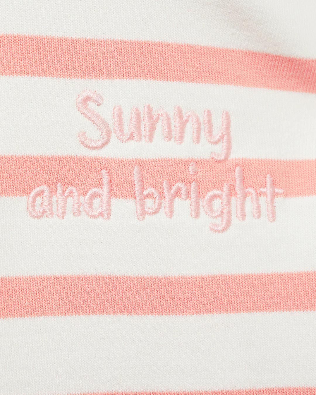 100% cotton fabric. Straight design. Stripe design. Round neck. Long sleeve. Contrasting cable knit finish. Embroidered detail. Total look.