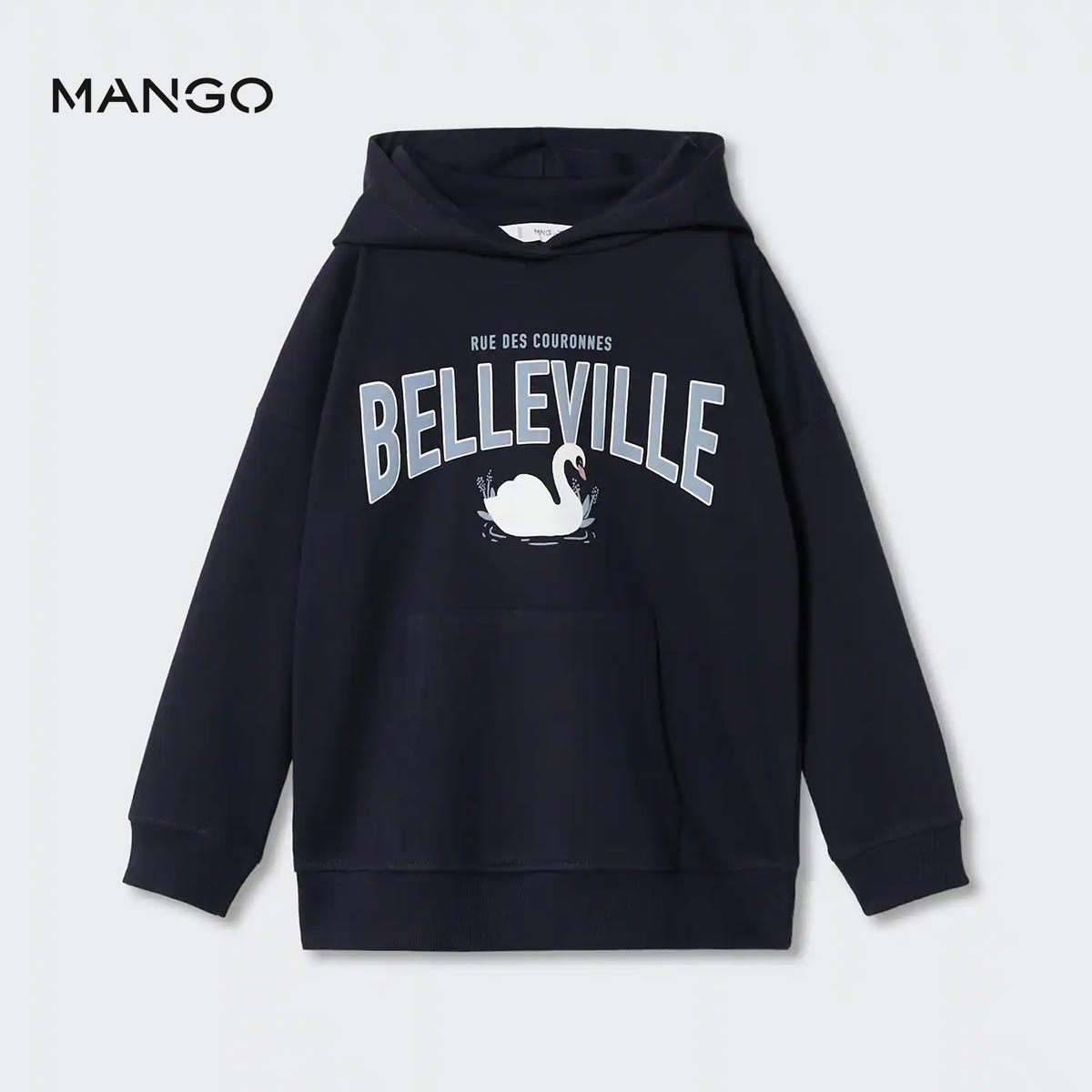 MANGO DARK NAVY OVERSIZED PRINTED HOODIE