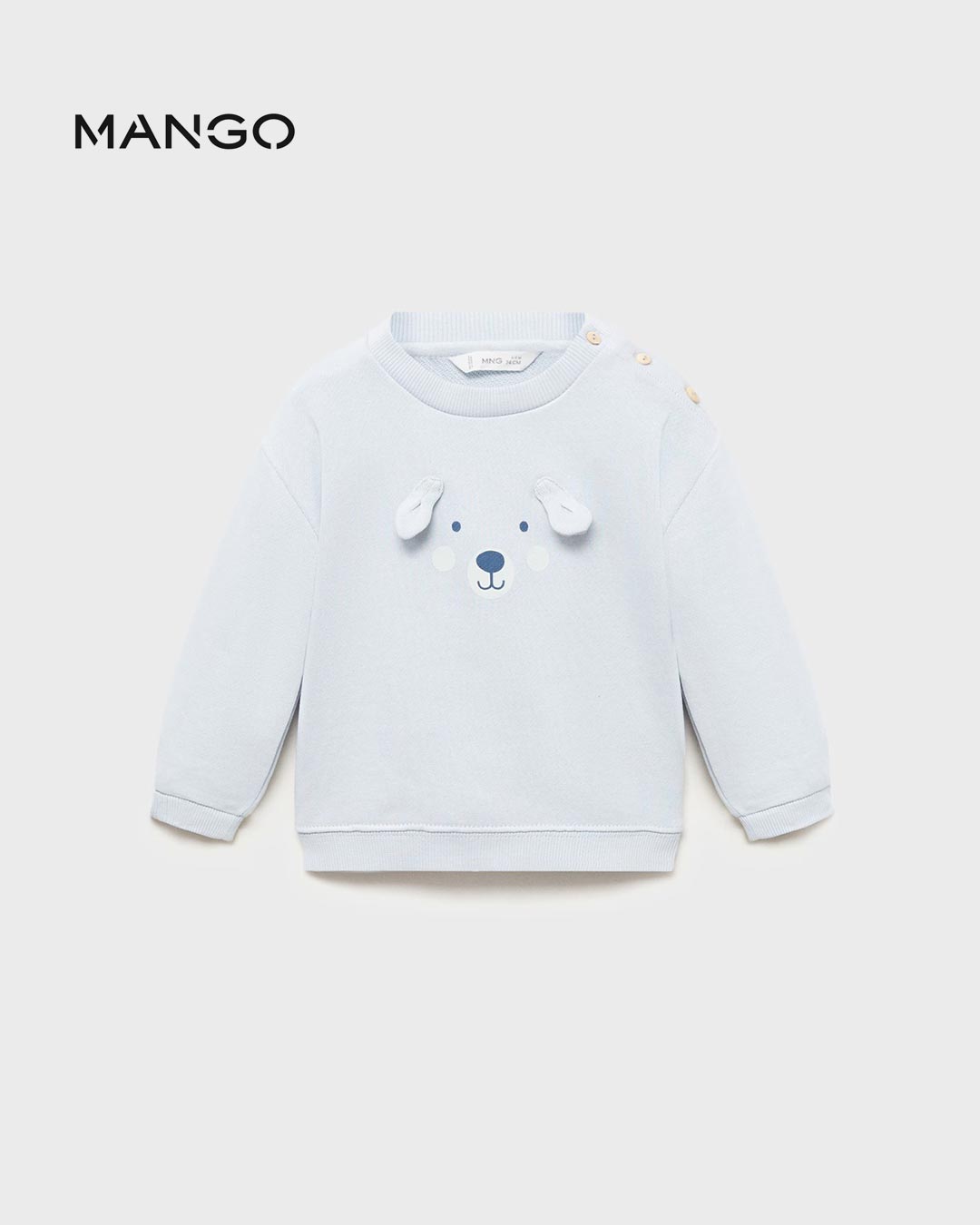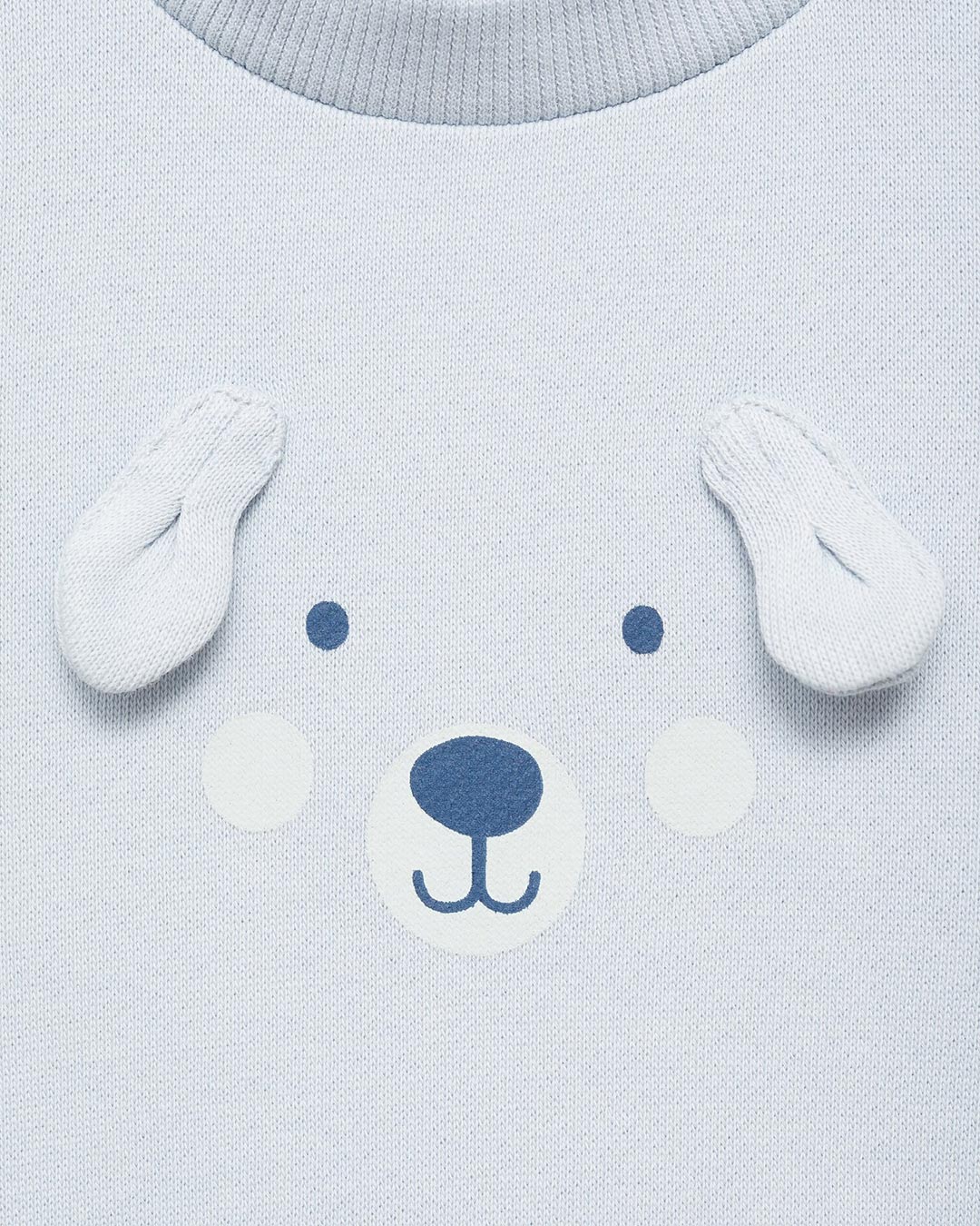 100% Cotton. Straight design. Puppy design. Embossed detail. Wood effect buttons. Round neck. Long sleeve. Ribbed collar, cuffs and hem. Closure on the shoulder.
