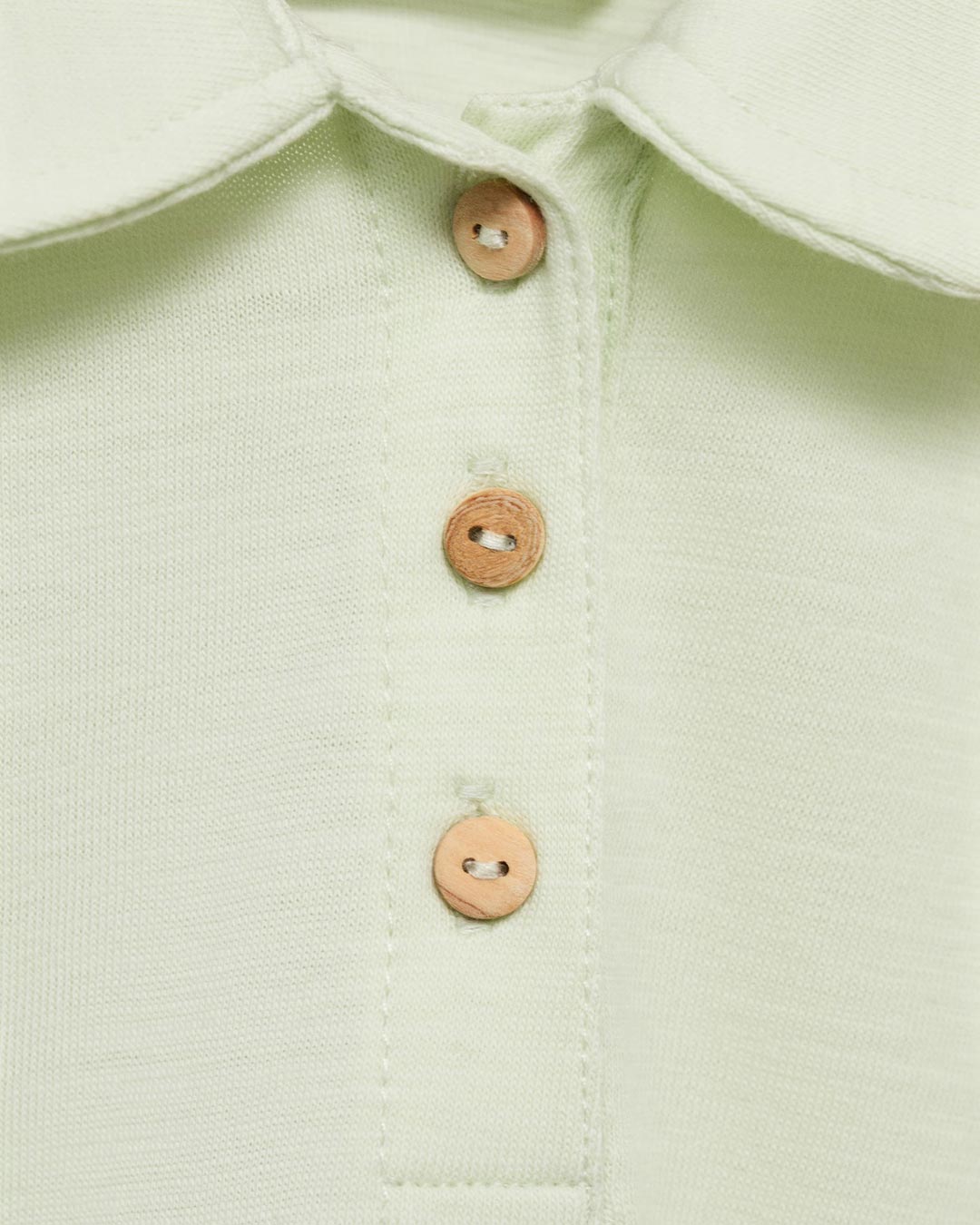 100% Cotton. Straight design. Short design. Wood effect buttons. Polo collar. Short sleeves.