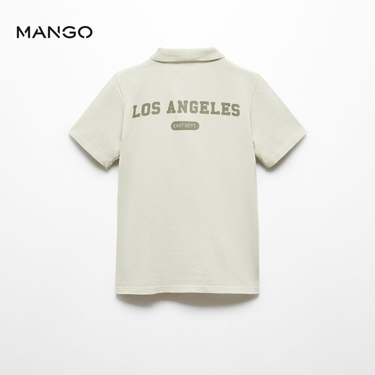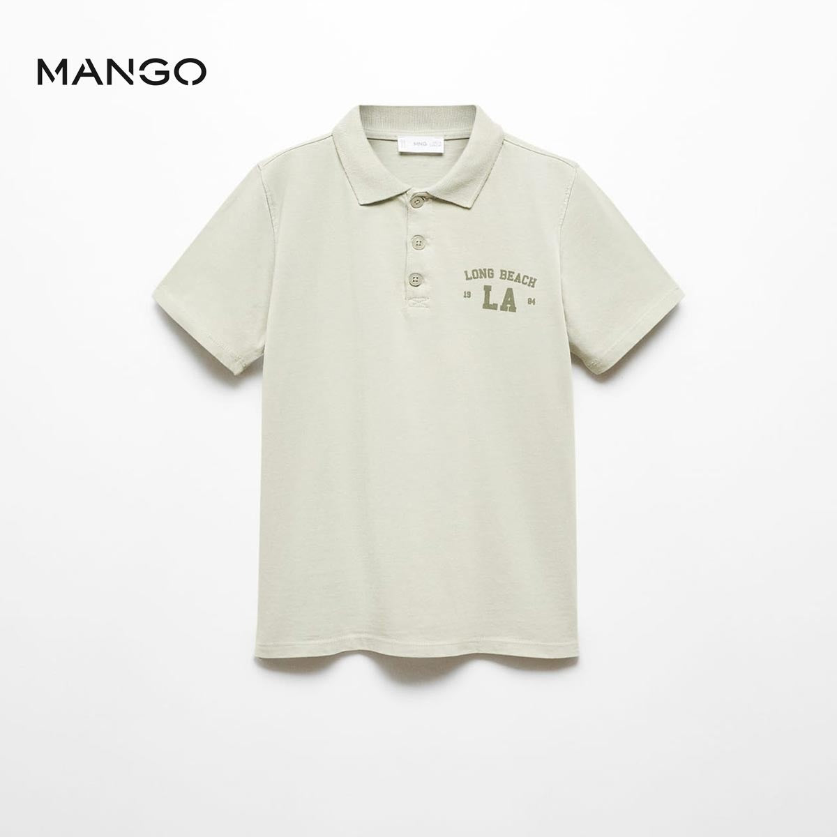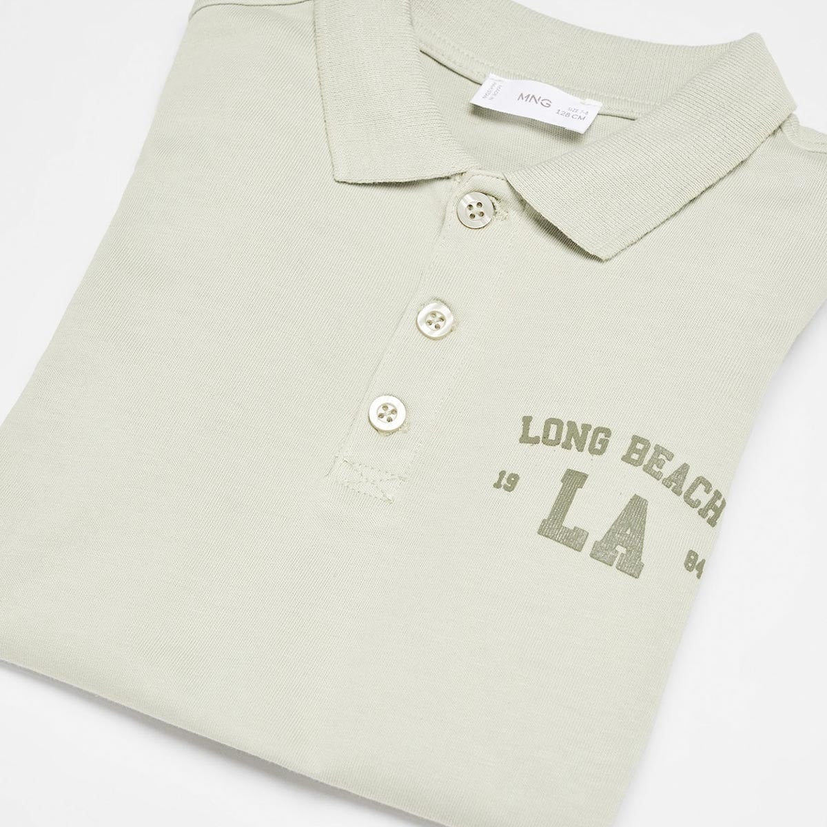 Straight design. Printed message. Short sleeve. Polo neck. Button up.