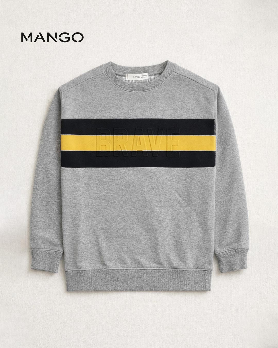 This Boys Grey Crewneck Sweatshirt offers a perfect balance of comfort, durability, and modern style. Designed in a versatile heather grey tone, it features a bold horizontal stripe across the chest with a subtle “BRAVE” embossed detail, adding a confident and sporty touch without being loud.