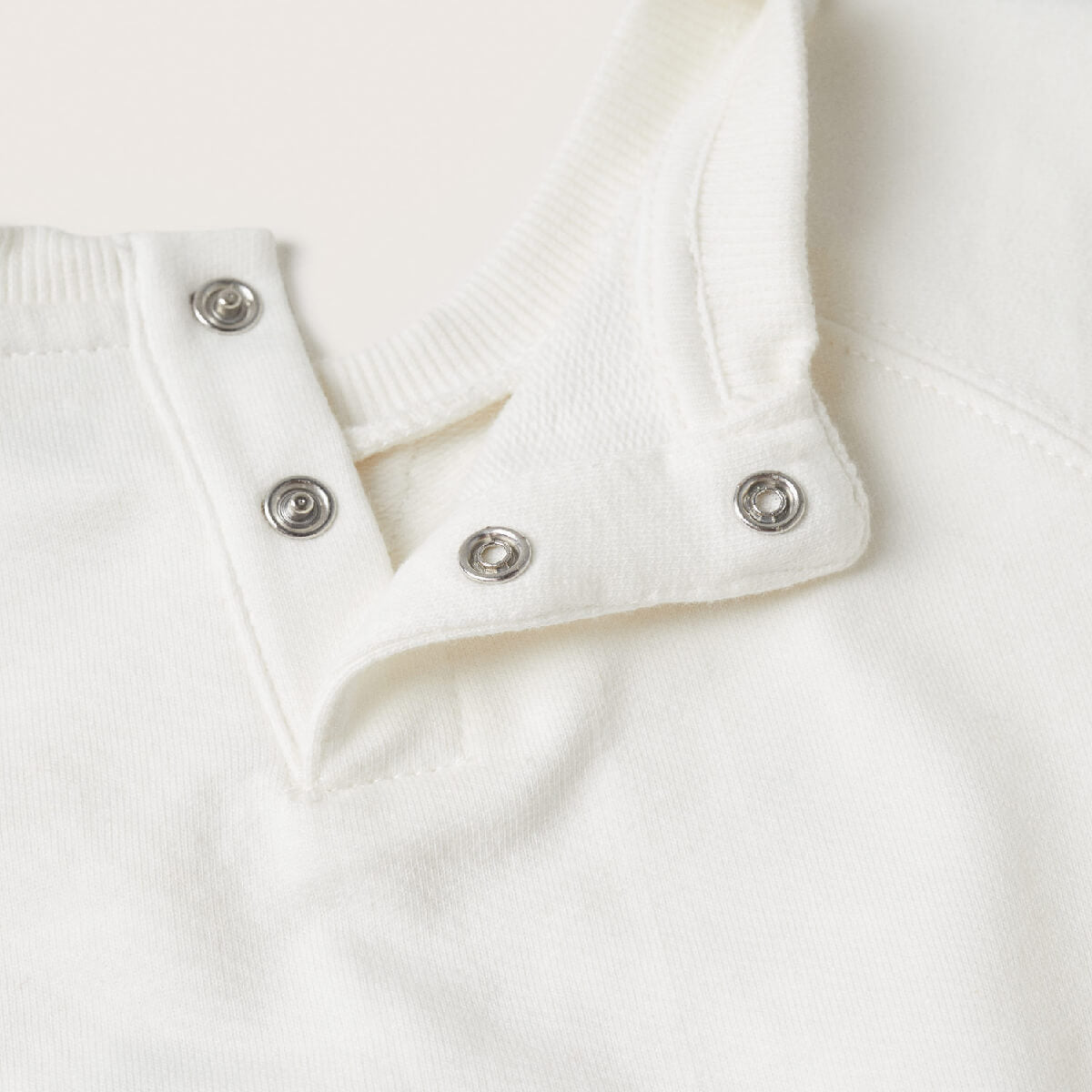 "DESCRIPTION 100% cotton fabric. Printed design. Embossed texture. Rounded neck. Long sleeve. Cable knit finish. Press stud fastening on the back."