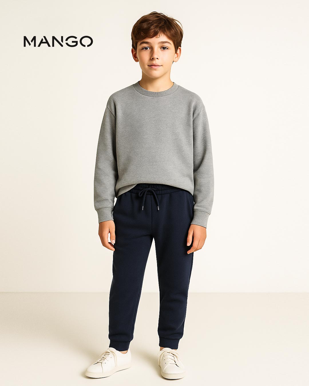 Trouser: Long design. Jogger design. Tracksuit. Elastic band. Elastic waist with drawstring. Two side pockets. Cord fastening.