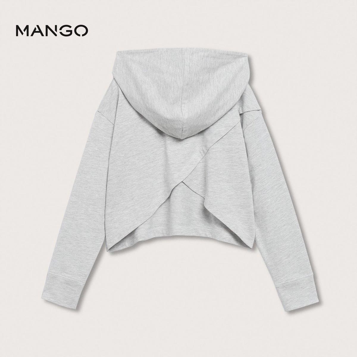 DESCRIPTION Sport. Cotton fabric. Sweat style. Cropped design. Rounded neck. Hood. Long sleeve. Crossover back. Back slit.
