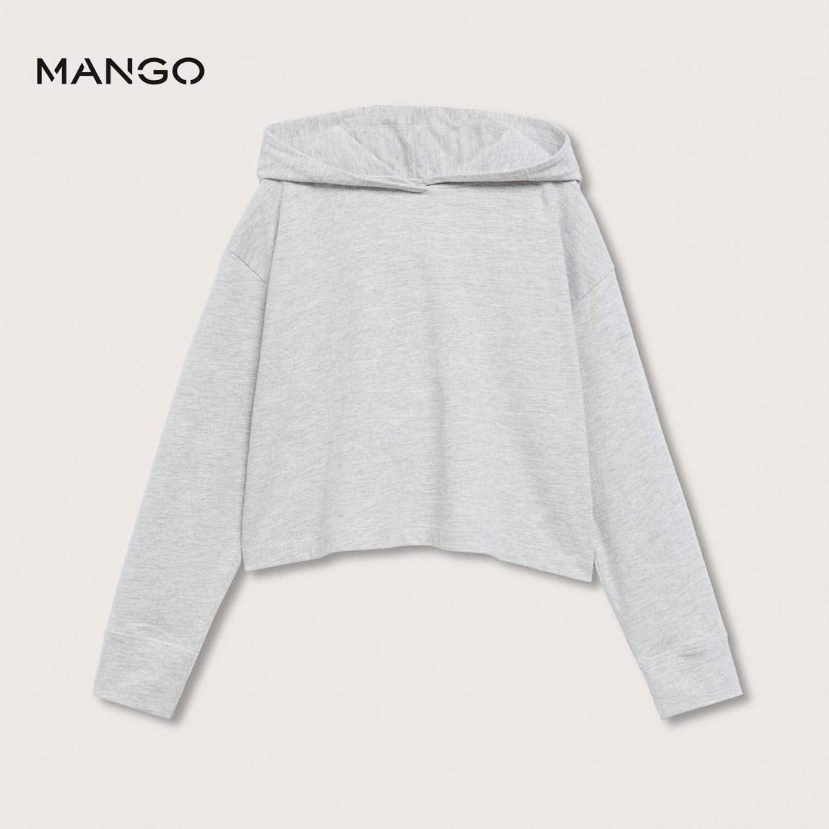 MANGO LIGHT GREY LONG SLEEVE HOODED T-SHIRT