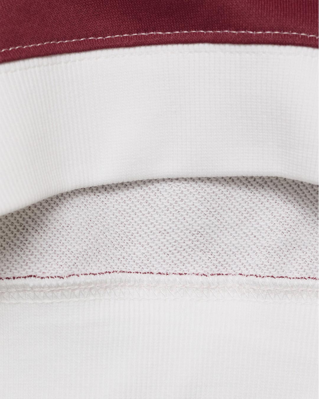 100% cotton fabric. Striped fabric. Straight design. Round neck without hood. Long sleeve. Ribbed collar, cuffs and hem. Printed text on the front.