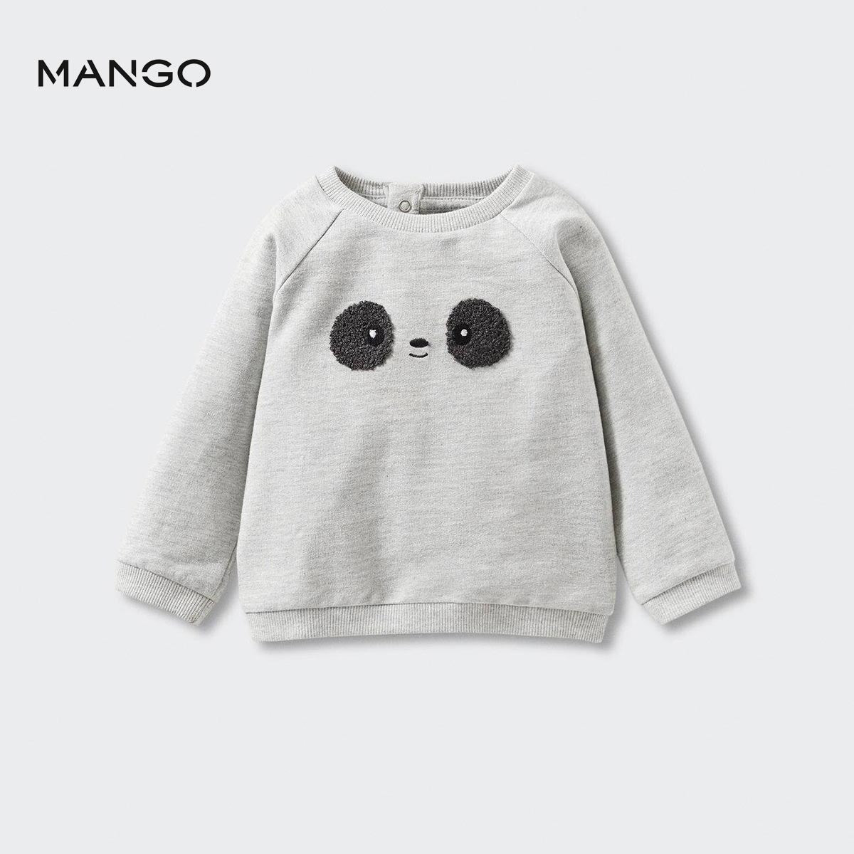 "Cotton fabric. Embossed texture. Rounded neck. Long sleeve. Press stud fastening on the back.