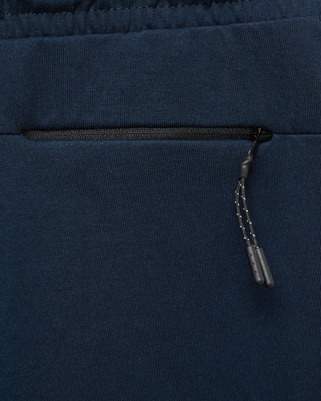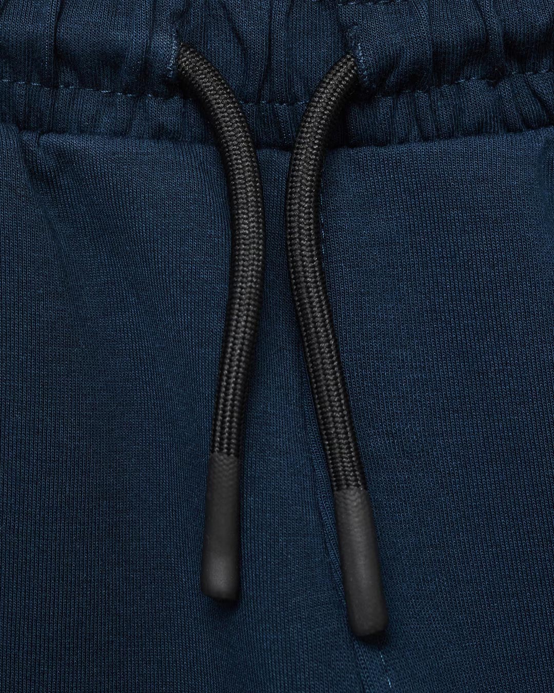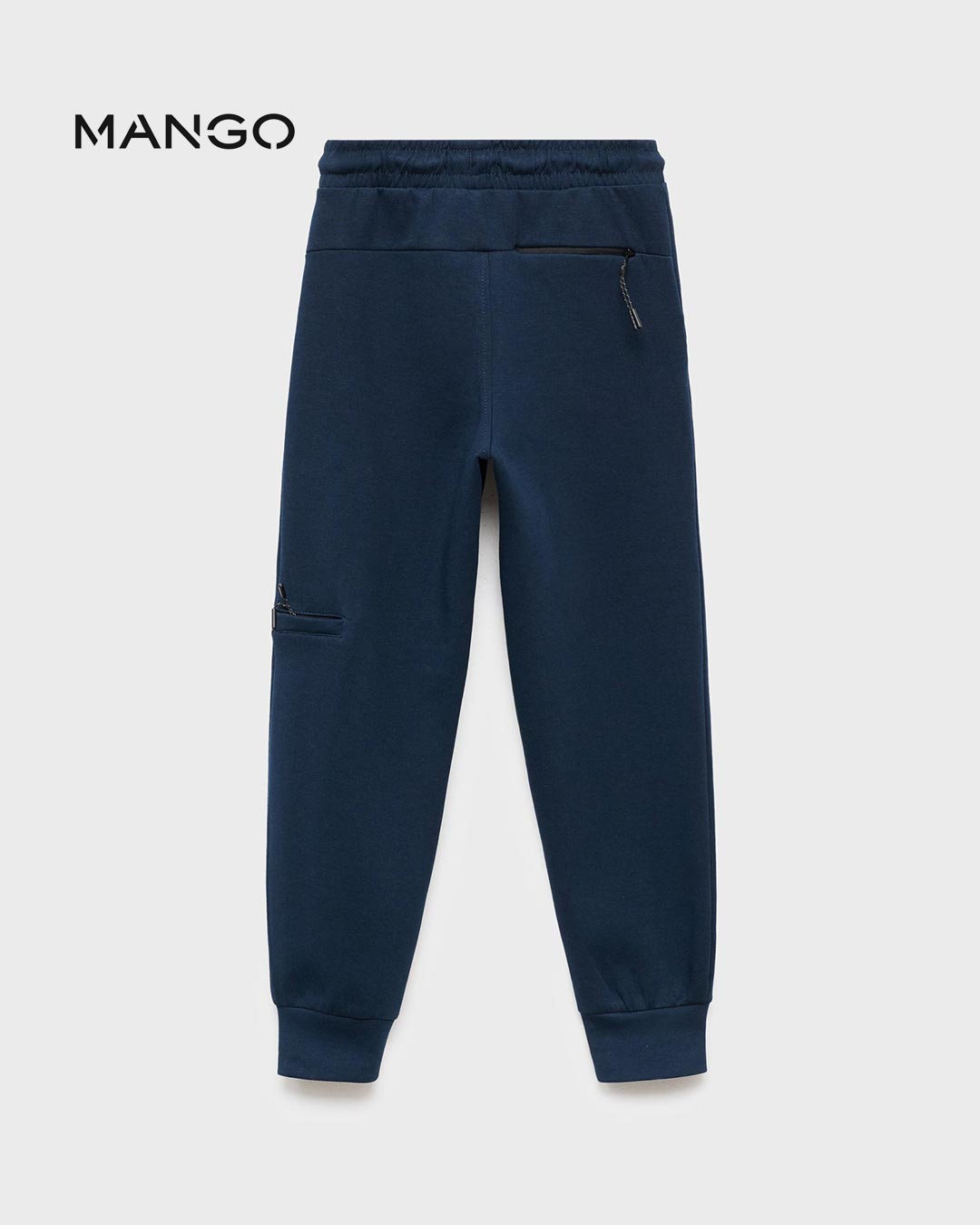 Cotton fabric. Stretch fabric. Long design. Jogger design. Elastic waist with drawstring. Two side pockets. Welt pocket.