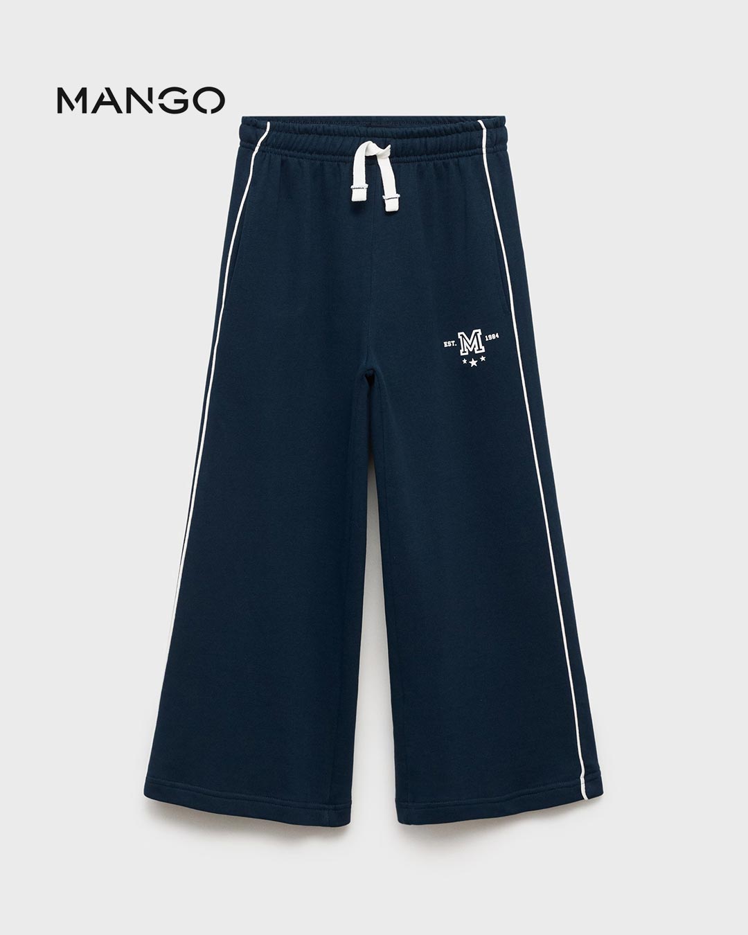 100% cotton fabric. Long Design. Culotte design. Elastic waist with drawstring. Stripy embroidery on the sides. Text printed on the side. Two side pockets. Two patch pockets at the back.