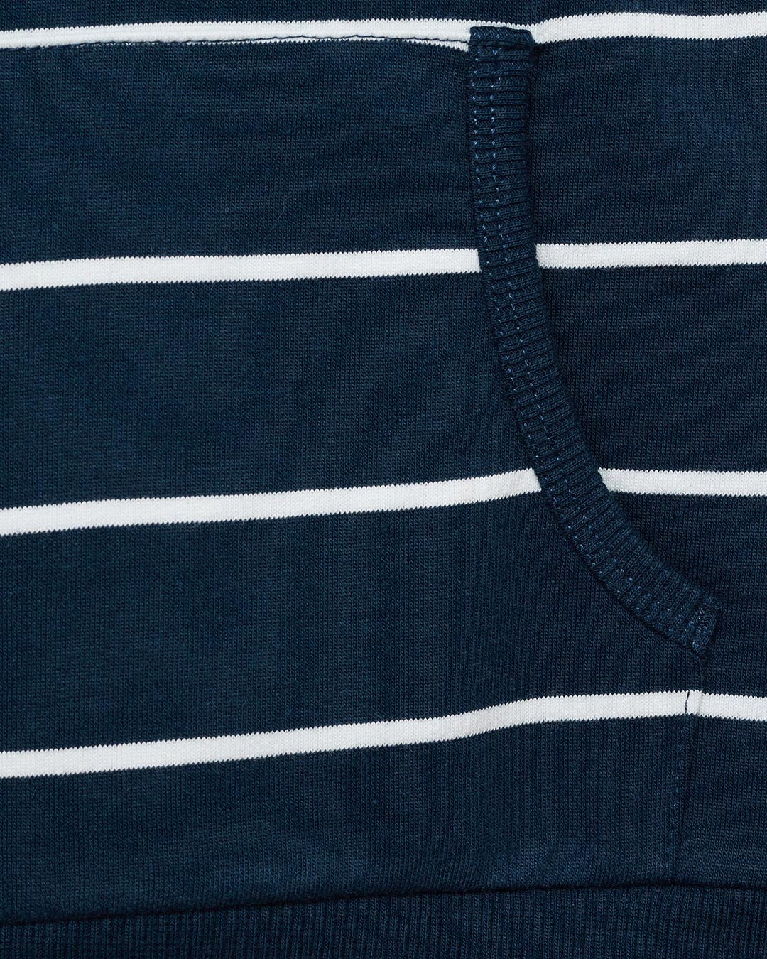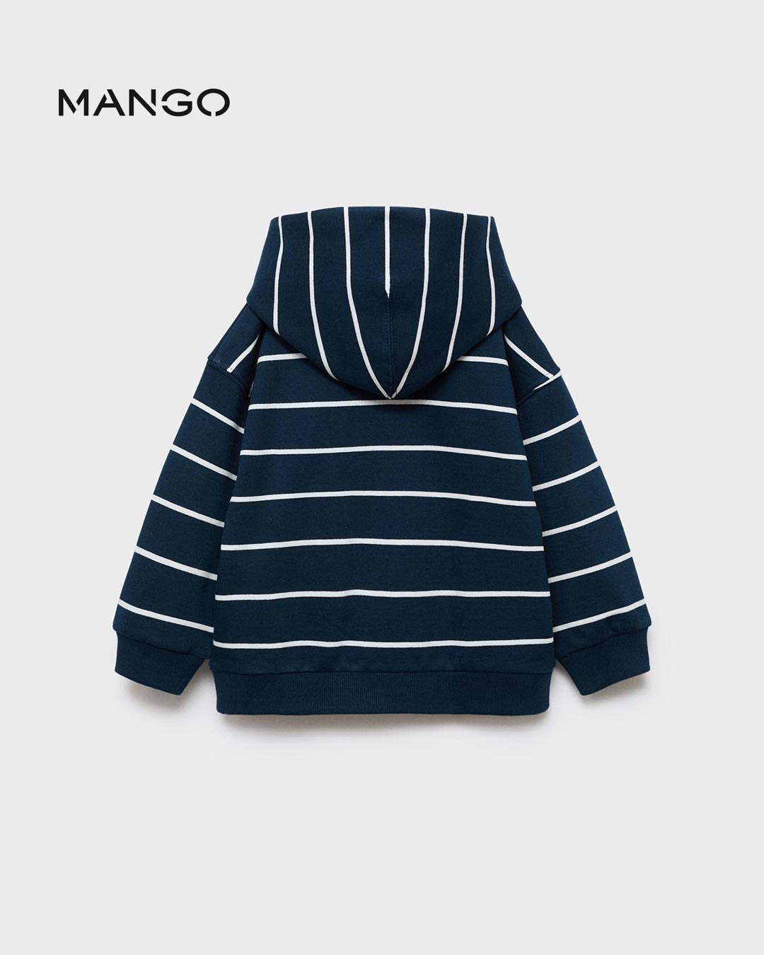 100% cotton fabric. Straight design. Printed design. Stripe design. Round neck. With hood. Long sleeves with elastic cuffs. Pouch pocket. Ribbed finishes.