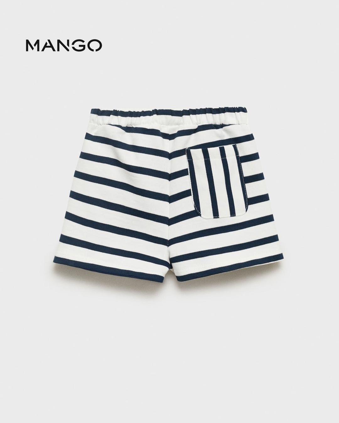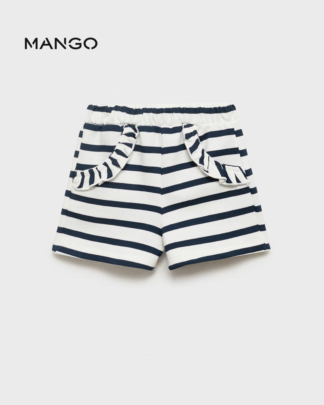 MANGO NAVY STRIPED SHORTS WITH RUFFLE POCKETS