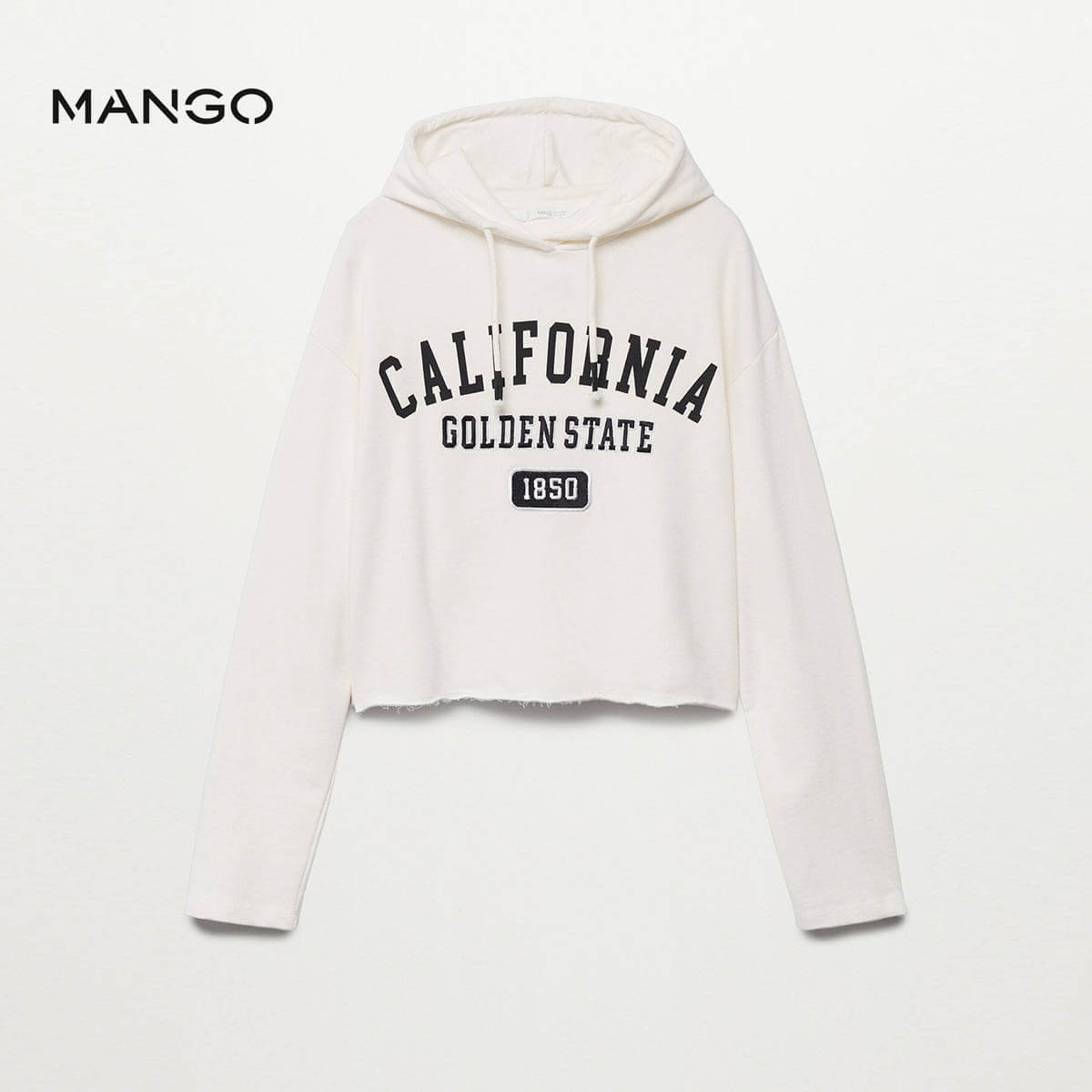 MANGO OFF WHITE CALIFORNIA PRINTED CROP HOODIE 25915