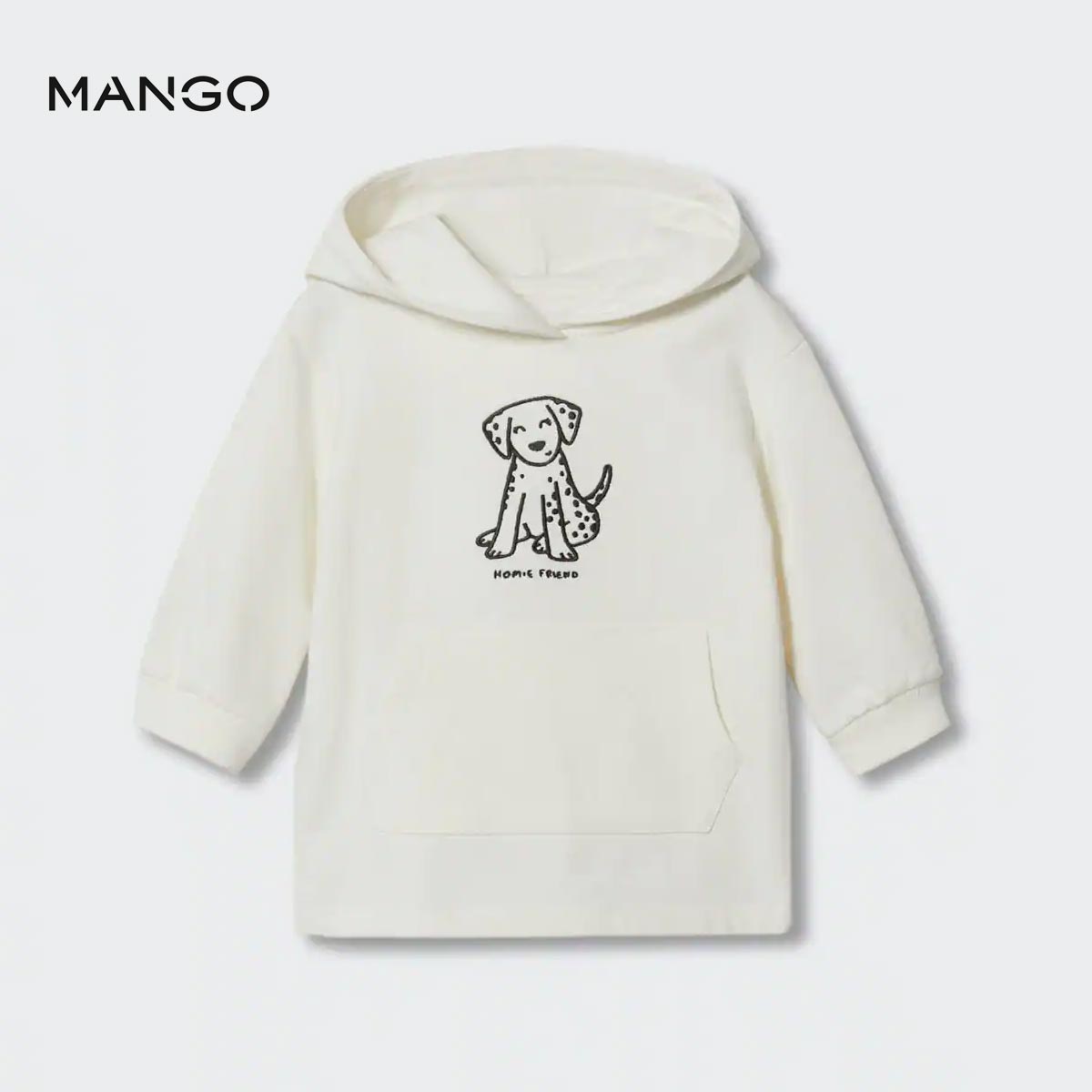 MANGO OFF WHITE EMBRIODRED FLEECE SWEATSHIRT DRESS WITH HOOD