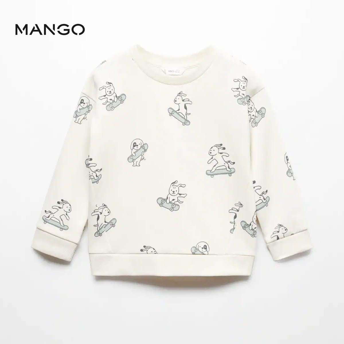 Straight design. Straight design. Print. Rounded neck. Long sleeve.