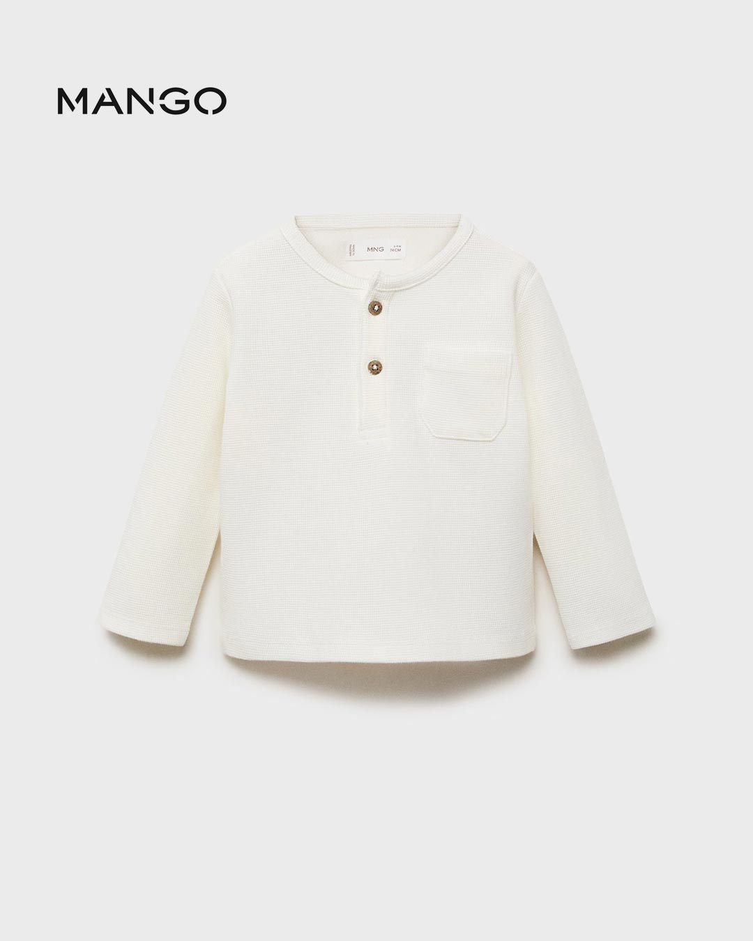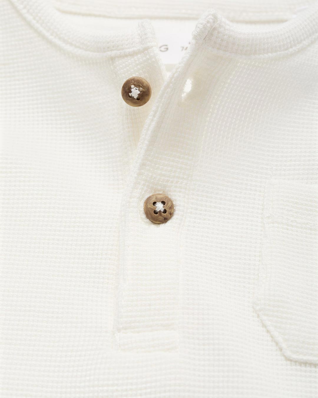 100% Cotton. Straight design. Long sleeve. Rounded neck with button fastening. Wood effect buttons.