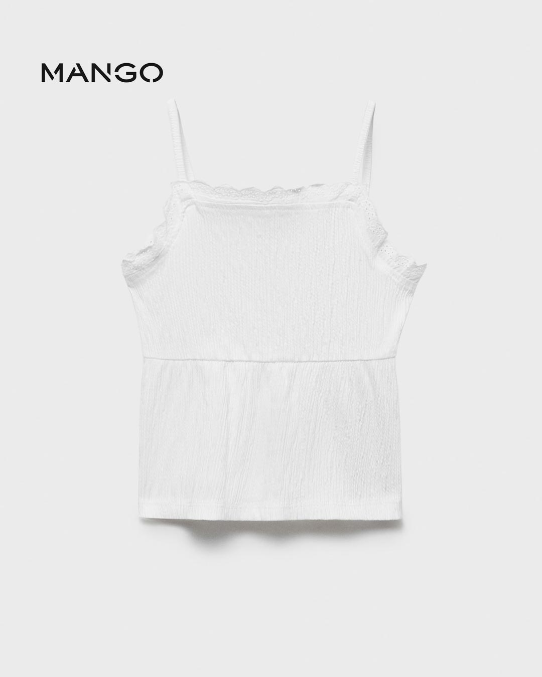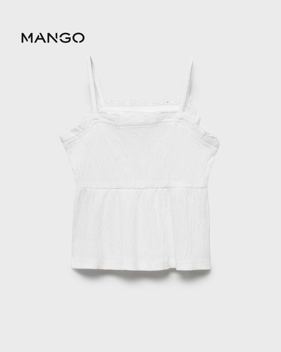 MANGO OFF WHITE TOP WITH SWISS EMBROIDERY DETAIL