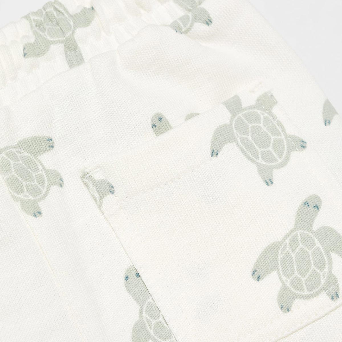 DESCRIPTION 100% Cotton. Short design. Straight design. Turtles print. Elastic waist. Patch pocket. Cord fastening.
