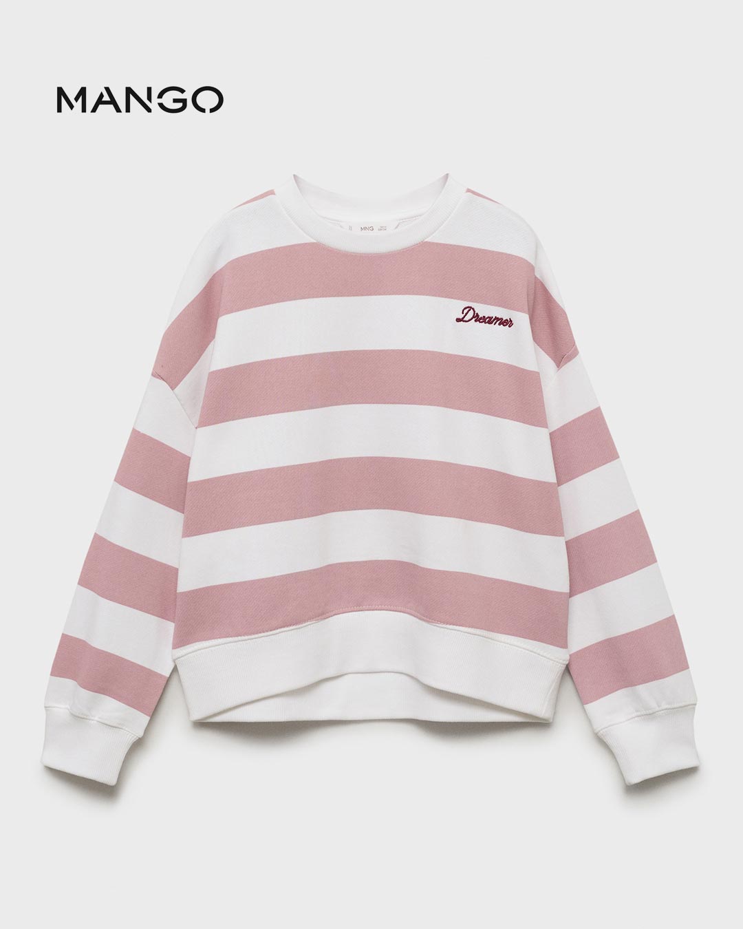 100% cotton fabric. Oversized design. Stripe design. Round neck. Long sleeve. Ribbed collar, cuffs and hem. Embroidered detail.