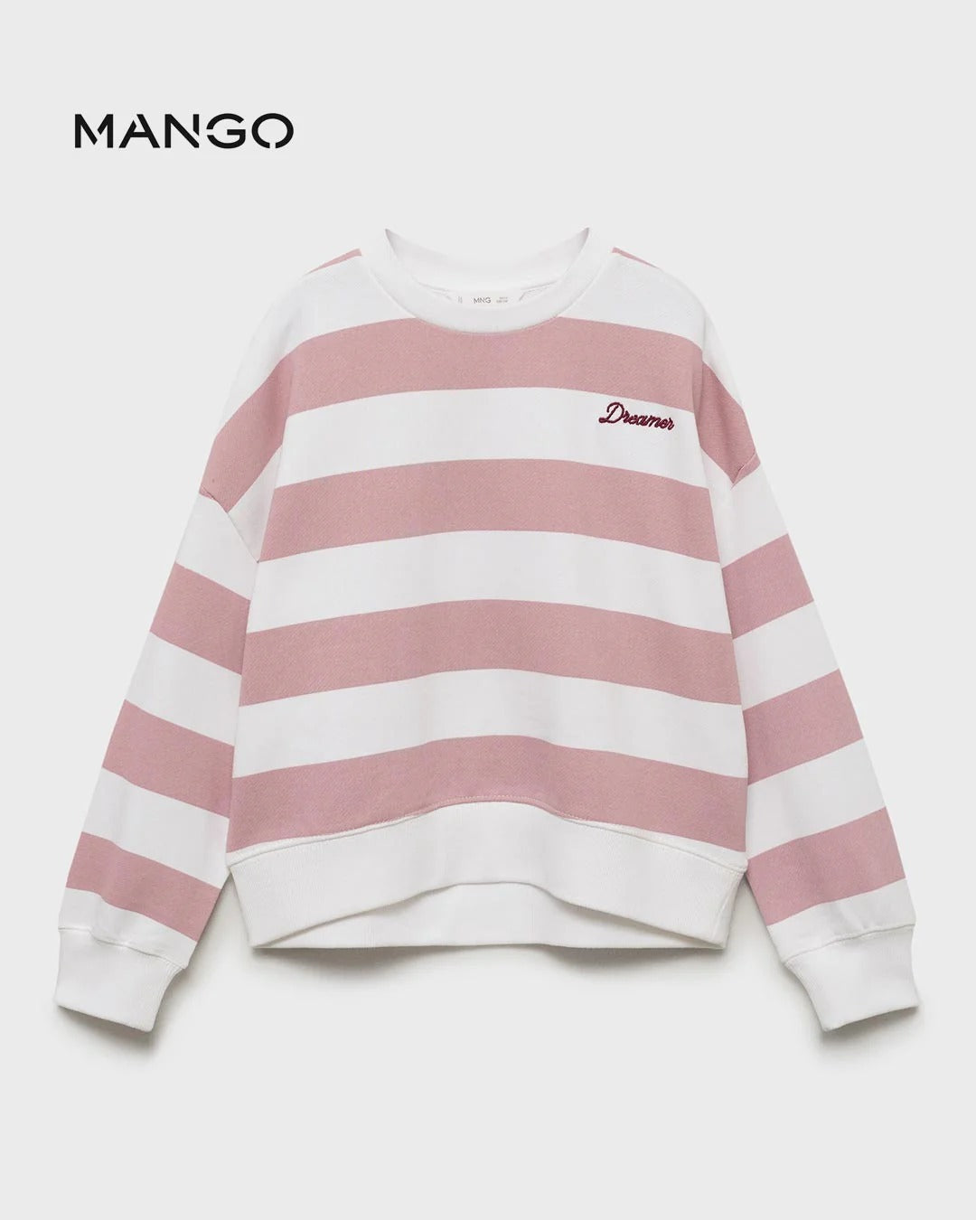 Description100% cotton fabric. Oversized design. Stripe design. Round neck. Long sleeve. Ribbed collar, cuffs and hem. Embroidered detail.