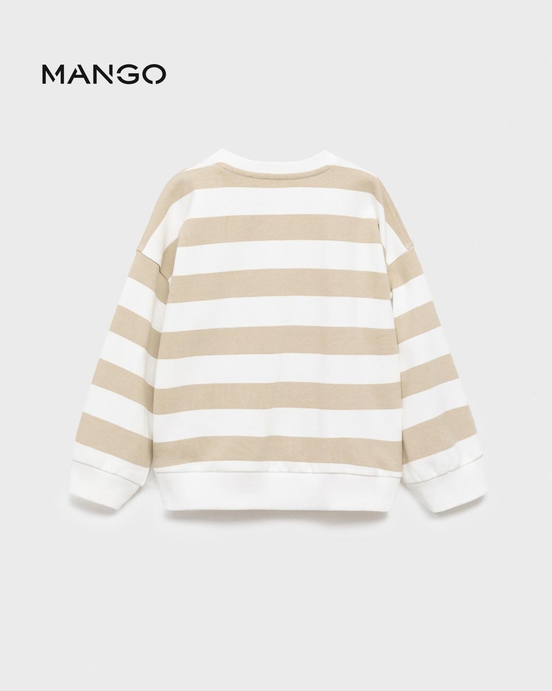 100% cotton fabric. Oversized design. Stripe design. Round neck. Long sleeve. Two side pockets. Ribbed collar, cuffs and hem.
