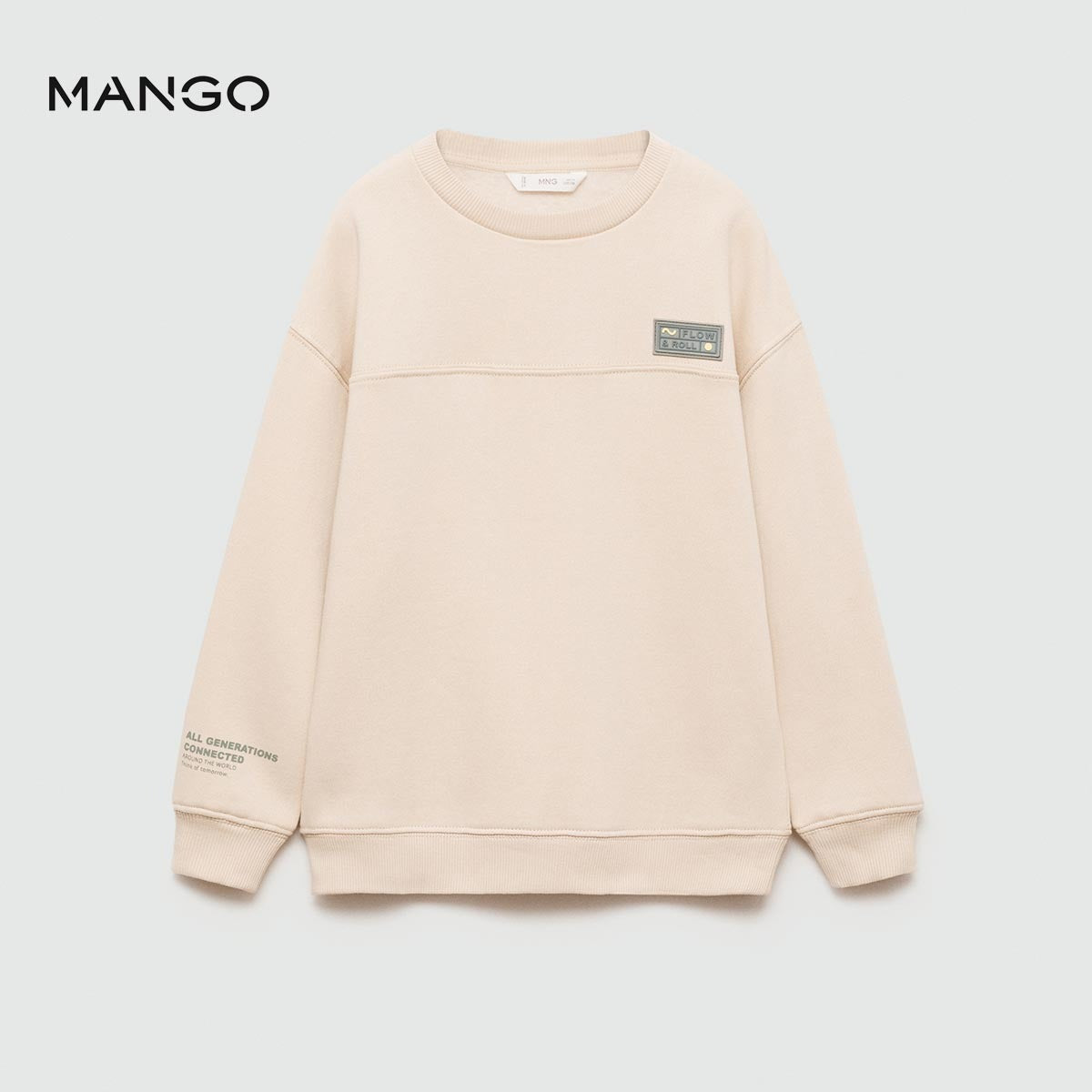 Back to school collection. Fabric with cotton. Embroidered patch. Decorative patch. Letter print. Round neck. Long sleeve. Unclosed.